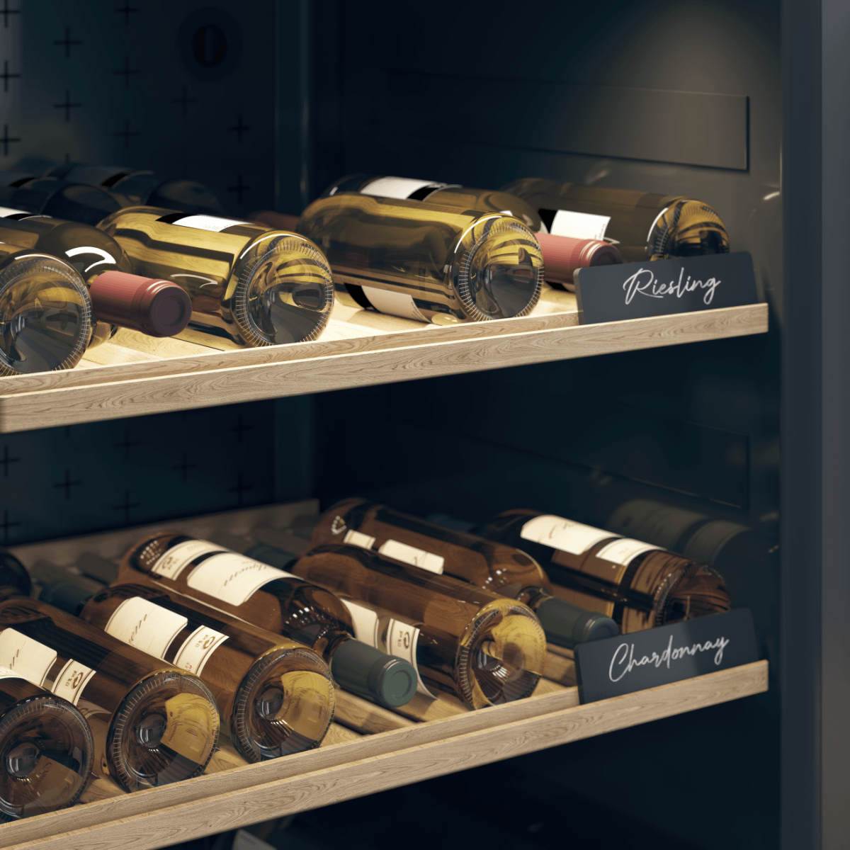 The ASKO Wine Aging cabinet has room for 261 bottles, storing them on wooden shelves, which are easy to access. Small built-in chalkboards let you label your collection on the shelves.