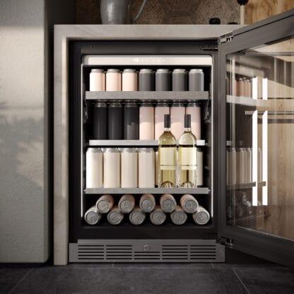 The Silhouette Pro Gen 3 - Sprbc052D3Ss 24" Built-In Beverage Center In Stainless Steel Is The Ultimate Solution For Beverage Storage, Accommodating Up To 147 Cans. Its Single-Zone Temperature Control Ranges From 34(Degree)F To 50(Degree)F, Ensuring Optimal Cooling. The Sleek Stainless Steel Design, Including A Pro-Style Handle And Kickplate, Adds A Modern Touch To Any Space. Features Like Full-Extension Runners With A Patent-Pending Can Dispenser Mode, Soft-Close Hinges, And A Field-Reversible Door Swing Enhance Convenience And Accessibility. Optimized Shelf Spacing Allows For Tall Can Storage, While Additional Shelf Space Is Perfect For Upright Bottles. The Anti-Glare Led Side Lighting Provides Excellent Visibility Without Harsh Reflections, Making This Beverage Center Both Functional And Stylish.