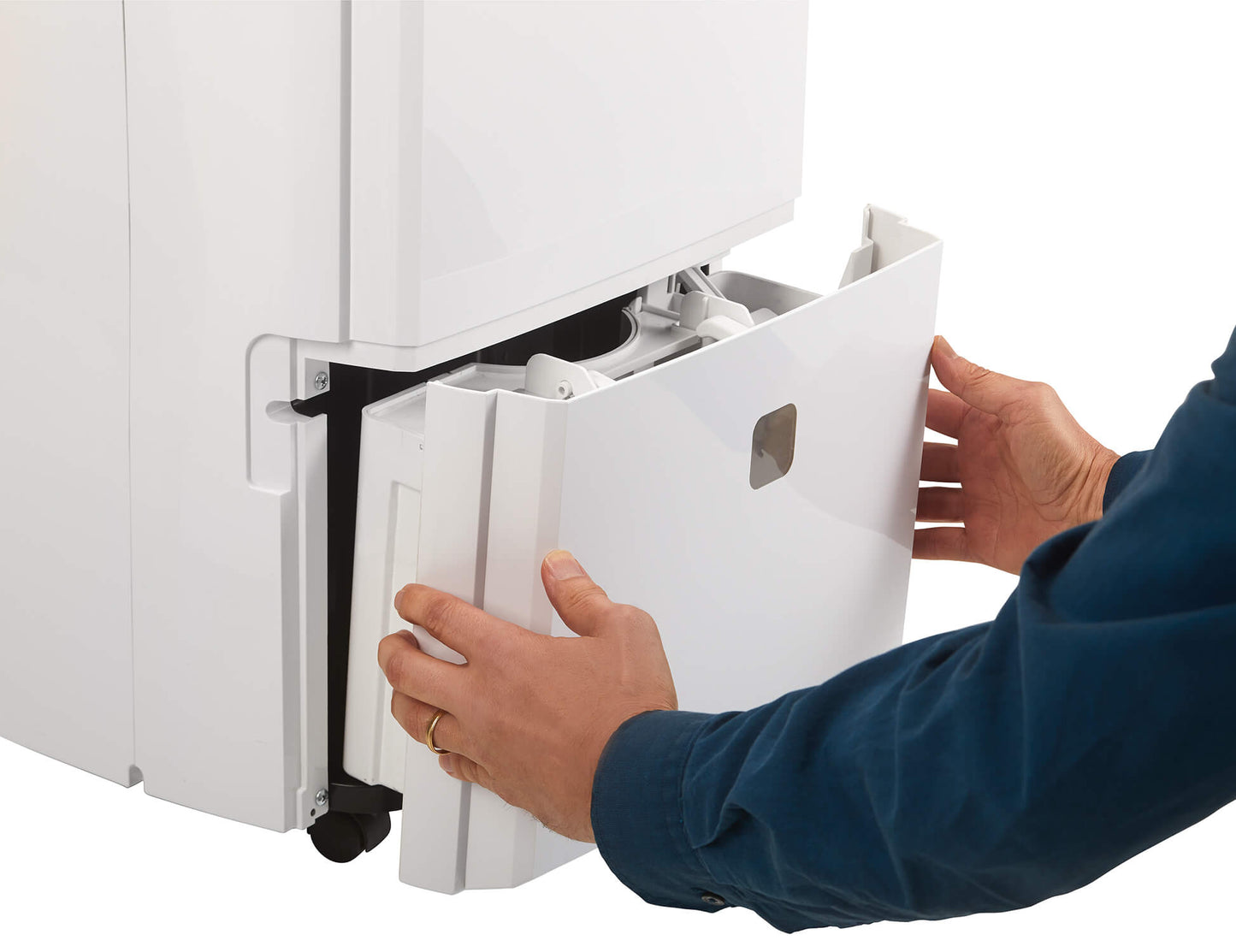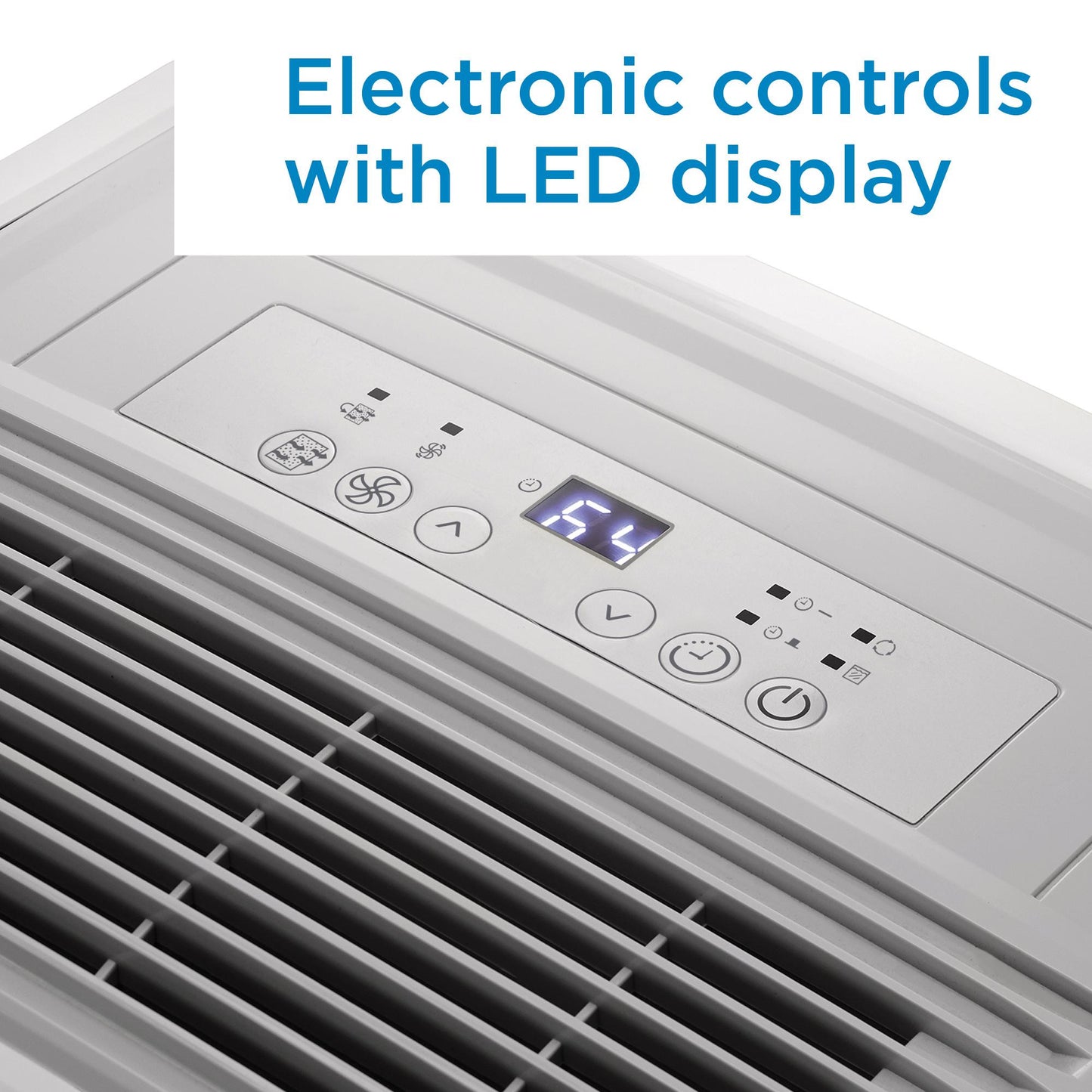 - 40 Pint (19.8L) Dehumidifier: controls humidity in spaces up to 2500 sq. ft.