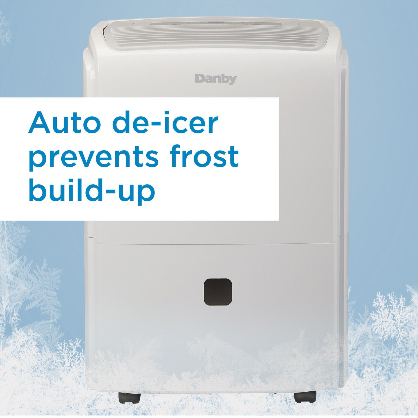 The Danby 40-Pint Dehumidifier Helps To Protect Your Home From Humidity By Removing 19.8L Of Humidity Per Day. Ideal For Spaces Up To 2,500 Sq.Ft., The Danby Dehumidifier Has Auto Restart To Restart Your Unit After A Power Failure And An Auto De-Icer To Prevent Frost Build-Up. The 4 Castors Make Make Moving Super Simple And The Low Temperature Function Allows You To Operate The Unit In Temperatures As Low As 5C. The Unit Is Energy Star Certified To Run Economically, Even In Very Humid Environments. This Dehumidifier Features Easy To Use Electronic Controls With Led Display, A Reusable/Washable Filter And A Powerful 2 Speed Fan.