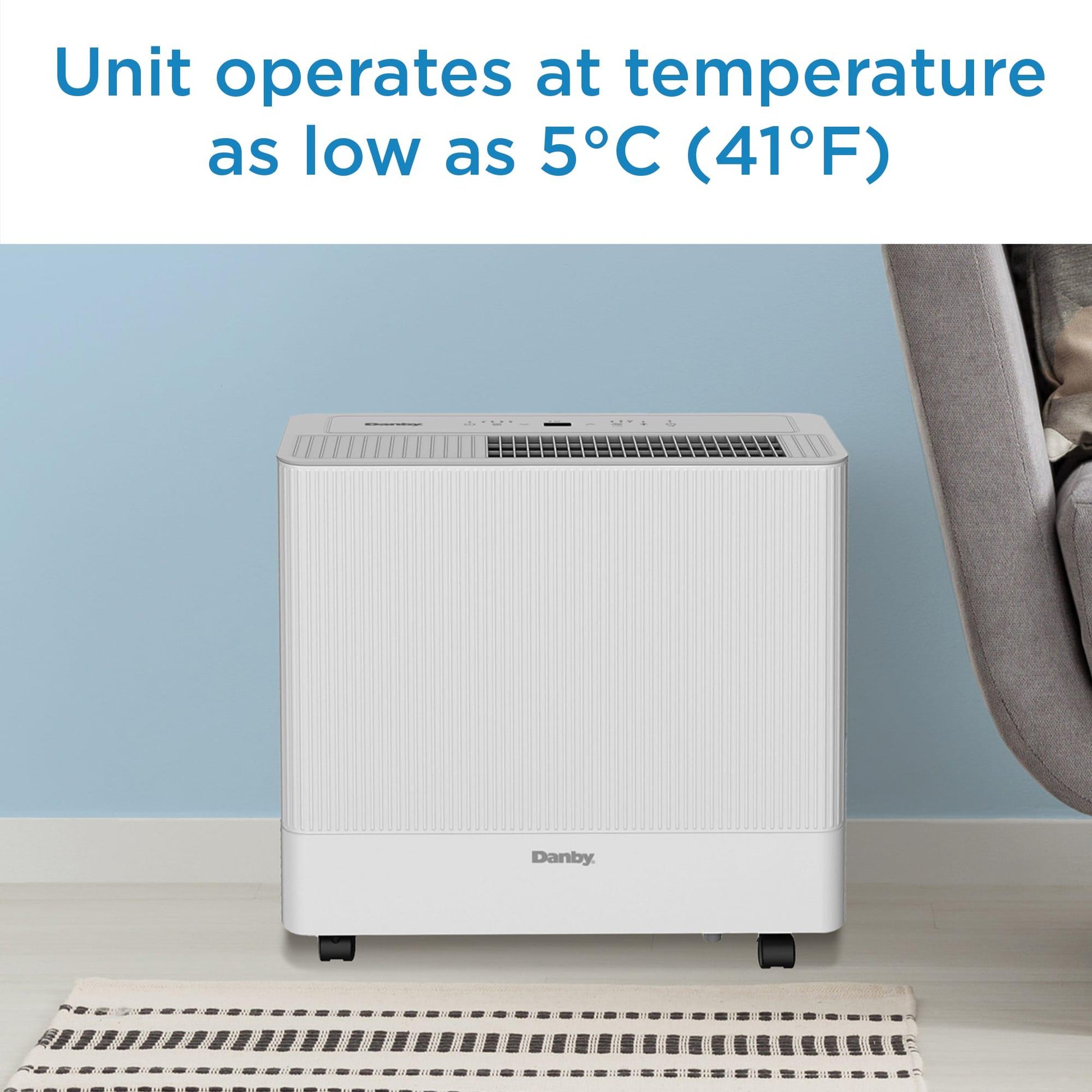 Introducing The Danby Ddr050Bspwdb 50-Pint Dehumidifier, Your Ultimate Solution For Controlling Humidity In Spaces Up To 3,000 Square Feet. With Its Wi-Fi Connect Feature And Bucket Full Indicator In The App, Monitoring And Managing Humidity Levels Has Never Been Easier. The Improved Vertical Pump Allows The Unit To Pump Water Directly Into A Sink Or Drain, Providing Hassle-Free Operation. Enjoy Continuous Operation With The Direct Drain Feature, While Experiencing Quiet Operation At Just 49 Db. Customize Your Comfort With The Powerful 2-Speed Fan, And Rest Assured Knowing This Unit Is Energy Star Certified For Energy Efficiency. With Electronic Controls And An Led Display, Programming The 24-Hour Timer Is A Breeze. Experience Peace Of Mind With The Auto Restart Function That Kicks In After A Power Failure, And Say Goodbye To Frost Build-Up With The Auto De-Icer Feature. Operate The Unit In Temperatures As Low As 5C With The Low Temp Function, While The Smart Dehumidify Feature Automatically Adjusts Room Humidity Based On Ambient Temperature. Keep Maintenance Simple With The Reusable, Washable Filter, And Feel Good About Using Environmentally Friendly R32 Refrigerant. With Easy-To-Move Castors And Integrated Handles, Transporting This Dehumidifier From Room To Room Is Effortless. Plus, Enjoy The Added Assurance Of A 2-Year Parts And Labor Warranty With Carry-In Service.