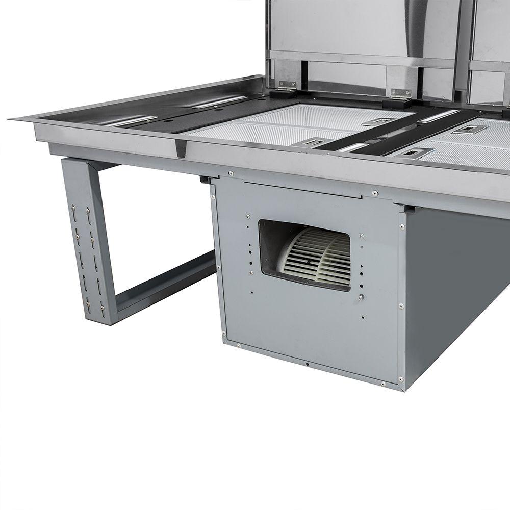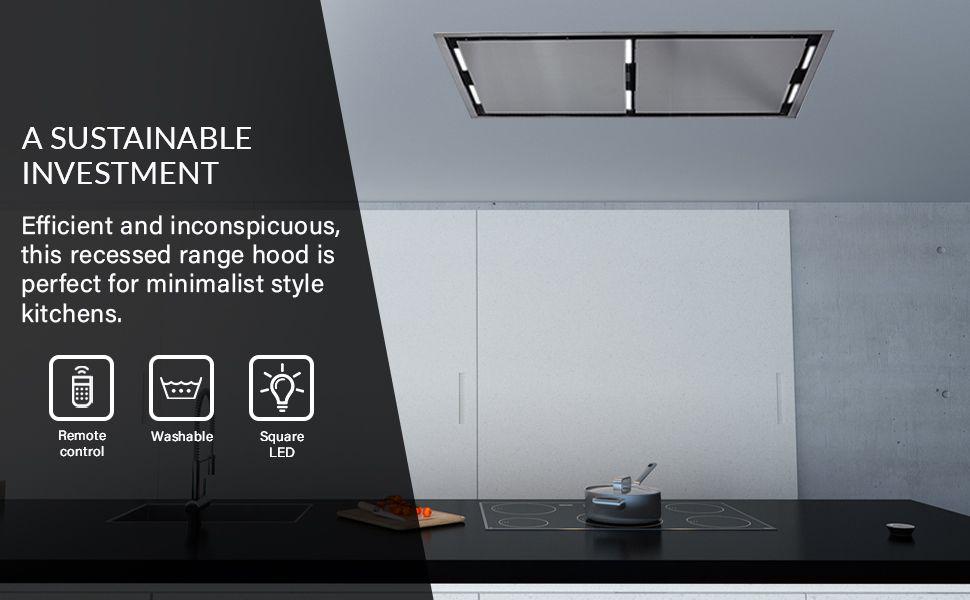 - In ceiling or within soffit installation allow for open sight lines in the kitchen all while a powerful motor operates to capture smoke, gases, steam and grease to keep your cooking area free of unwanted odors.