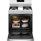 This gas range with nickel racks provides a durable design that handles heavy baking dishes with ease.
