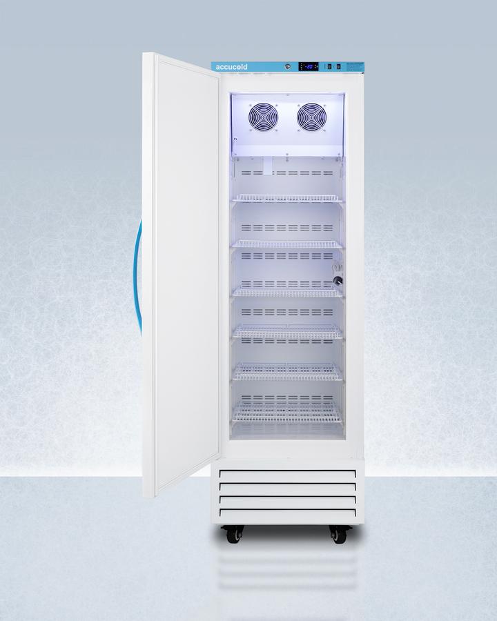 Accucold'S Pharma-Vac Performance Series Upright Freezers Are Designed And Purpose-Built For Pharmacy, Medication, And Vaccine Applications, Supporting Compliance With Cdc/Vfc/Vfa Guidelines. The Afs14Pvdl2Blhd Is An Upright Frost-Free All-Freezer With A Temperature Range Of -30(Degree)C To -10(Degree)C As Recommended For Various Vaccines And Pharmaceuticals. The Microprocessor Temperature Controller Is Externally Located To Minimize Door Openings, Helping To Protect Stored Contents From Ambient Temperature. The Buffered Temperature Probe Is Encased In A Glycol-Filled Bottle To Better Simulate The Temperature Of The Stored Product, With An Additional Sensor That Reads Air Temperature To Ensure Superior Temperature Control. The Current And Min/Max Temperature Display Is Viewable In Celsius Or Fahrenheit . The Audible And Visual Temperature Alarm Sounds If The Unit'S Interior Goes Out Of Range. Additional Alarms Include A Power Failure Alert, Door Open Alarm, And Sensor Failure Alarm. This Model Is Equipped With Remote Alarm Contacts In The Rear And A 1/2" Probe Port On The Right Side To Accept Additional Monitoring Devices. A Hospital-Grade Cord With A 'Green Dot' Plug Is Also Included For Added Safety In High-Traffic Areas. We Also Include Our Dl2B Digital Data Logger To Be Mounted To The Door, A Feature Recommended By The Cdc, Vfc And Vfa For Vaccine Storage. This Password-Protected Ddl Is Nist Calibrated In Our Iso/Iec 17025:2017 Accredited Laboratory And Offers A Large Lcd Display Of The Current And High/Low Temperature, Recording Up To 32,000 Data Groups To Its Internal Memory Or Even More On The Included 4Gb Usb Flash Drive. Data Can Be Viewed Through A Pc Or Mac In Microsoft Excel Or Any .Csv Compatible Program. Users Can Set Their Own Recording Intervals Starting At Increments Of 10 Seconds To Best Meet A Facility'S Specific Logging Needs. We Include A 2-Year Certificate Of Calibration Beginning The Date Of Manufacture. The Logger Can Be Re-Calibrated In Our Laboratories After The Certificate Expires. (For Additional Information On The Ddl, See The Dl2Bkit Listing On Our Website.) Inside, This Freezer Has 9.53 Cu. Ft Of Storage Space And Features Six Adjustable Plastic-Coated Wire Shelves That Can Be Positioned At 1/2" Increments To Accommodate Virtually Any Sized Item. This Unit Includes Led Internal Lighting With An On/Off Rocker Switch. The Interior Is Constructed From White Powder-Coated Metal To Ensure Added Durability And Better Temperature Retention. The Afs14Pvdl2Blhd Comes In A White Exterior Finish With A Blue Accented Control Panel. The Factory-Installed Antimicrobial Handle Is Powder-Coated With Naturally Occurring Silver Ions, Which Help To Reduce The Spread Of Germs, Allowing For A Safer, Cleaner User Experience. This Model Includes A Factory-Installed Lock And Ships With Two Keys For Staff Use. Powerful Magnetic Gaskets Ensure A Positive Seal. Four Pre-Installed 4" High Casters With Brakes Make It Easier To Move As Needed. Additional Sizes And Matching All-Refrigerators Are Also Available. Explore The Entire Pharma-Vac Series At Accucold.Com