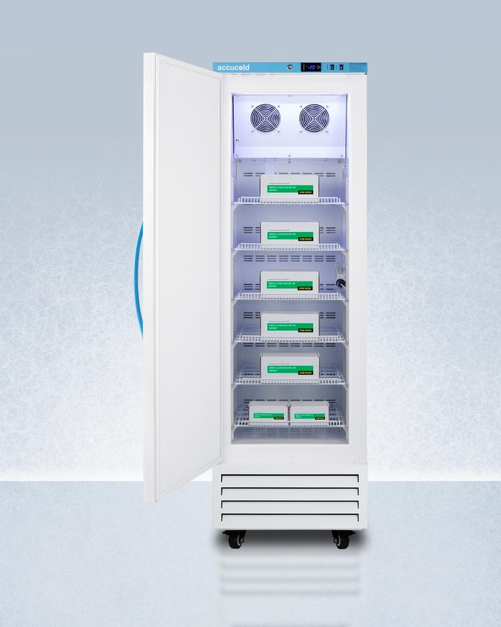 Accucold'S Pharma-Vac Performance Series Upright Freezers Are Designed And Purpose-Built For Pharmacy, Medication, And Vaccine Applications, Supporting Compliance With Cdc/Vfc/Vfa Guidelines. The Afs14Pvlhd Is An Upright Frost-Free All-Freezer With A Temperature Range Of -30(Degree)C To -10(Degree)C As Recommended For Various Vaccines And Pharmaceuticals. The Microprocessor Temperature Controller Is Externally Located To Minimize Door Openings, Helping To Protect Stored Contents From Ambient Temperature. The Buffered Temperature Probe Is Encased In A Glycol-Filled Bottle To Better Simulate The Temperature Of The Stored Product, With An Additional Sensor That Reads Air Temperature To Ensure Superior Temperature Control. The Current And Min/Max Temperature Display Is Viewable In Celsius Or Fahrenheit . The Audible And Visual Temperature Alarm Sounds If The Unit'S Interior Goes Out Of Range. Additional Alarms Include A Power Failure Alert, Door Open Alarm, And Sensor Failure Alarm. This Model Is Equipped With Remote Alarm Contacts In The Rear And A 1/2" Probe Port On The Right Side To Accept Additional Monitoring Devices. A Hospital-Grade Cord With A 'Green Dot' Plug Is Also Included For Added Safety In High-Traffic Areas. Inside, This Freezer Has 9.53 Cu. Ft Of Storage Space And Features Six Adjustable Plastic-Coated Wire Shelves That Can Be Positioned At 1/2" Increments To Accommodate Virtually Any Sized Item. This Unit Includes Led Internal Lighting With An On/Off Rocker Switch. The Interior Is Constructed From White Powder-Coated Metal To Ensure Added Durability And Better Temperature Retention. The Afs14Pvlhd Comes In A White Exterior Finish With A Blue Accented Control Panel And A Left Hand Door Swing. The Factory-Installed Antimicrobial Handle Is Powder-Coated With Naturally Occurring Silver Ions, Which Help To Reduce The Spread Of Germs, Allowing For A Safer, Cleaner User Experience. This Model Includes A Factory-Installed Lock And Ships With Two Keys For Staff Use. Powerful Magnetic Gaskets Ensure A Positive Seal. Four Pre-Installed 4" High Casters With Brakes Make It Easier To Move As Needed. Additional Sizes And Matching All-Refrigerators Are Also Available. Explore The Entire Pharma-Vac Series At Accucold.Com Note: Accucold Freezers Are Purpose-Built To Meet The Current Cdc (Centers For Disease Control) Guidelines For The Storage Of Vaccines. For Additional Temperature Assurance, The Cdc Recommends A Calibrated Digital Data Logger (Ddl), Which Can Be Added With The Factory-Installed Option Dl2B Or The Dl2Bkit Accessory.
