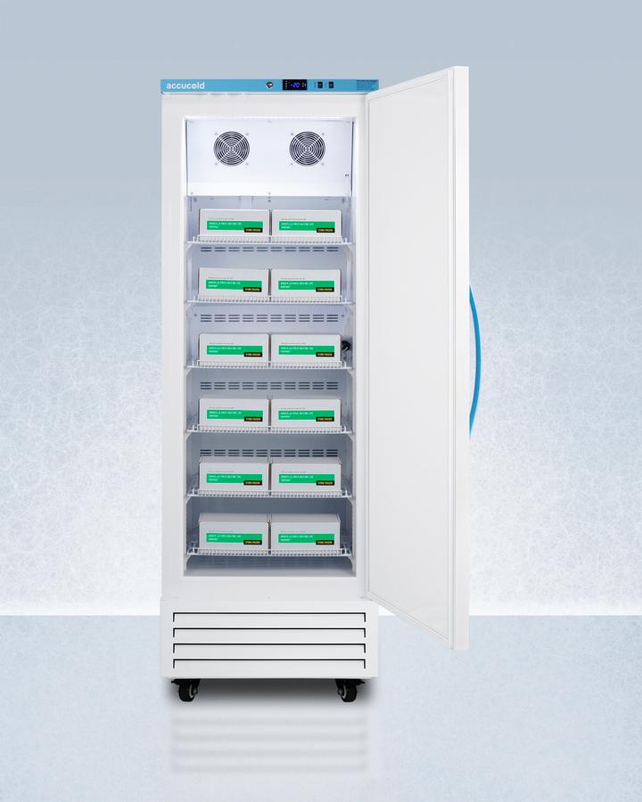 Accucold'S Pharma-Vac Performance Series Upright Freezers Are Designed And Purpose-Built For Pharmacy, Medication, And Vaccine Applications, Supporting Compliance With Cdc/Vfc/Vfa Guidelines. The Afs17Pv Is An Upright Frost-Free All-Freezer With A Temperature Range Of -30(Degree)C To -10(Degree)C As Recommended For Various Vaccines And Pharmaceuticals. The Microprocessor Temperature Controller Is Externally Located To Minimize Door Openings, Helping To Protect Stored Contents From Ambient Temperature. The Buffered Temperature Probe Is Encased In A Glycol-Filled Bottle To Better Simulate The Temperature Of The Stored Product, With An Additional Sensor That Reads Air Temperature To Ensure Superior Temperature Control. The Current And Min/Max Temperature Display Is Viewable In Celsius Or Fahrenheit . The Audible And Visual Temperature Alarm Sounds If The Unit'S Interior Goes Out Of Range. Additional Alarms Include A Power Failure Alert, Door Open Alarm, And Sensor Failure Alarm. This Model Is Equipped With Remote Alarm Contacts In The Rear And A 1/2" Probe Port On The Right Side To Accept Additional Monitoring Devices. A Hospital-Grade Cord With A 'Green Dot' Plug Is Also Included For Added Safety In High-Traffic Areas. Inside, This Freezer Has 14.83 Cu. Ft Of Storage Space And Features Six Adjustable Plastic-Coated Wire Shelves That Can Be Positioned At 1/2" Increments To Accommodate Virtually Any Sized Item. This Unit Includes Led Internal Lighting With An On/Off Rocker Switch. The Interior Is Constructed From White Powder-Coated Metal To Ensure Added Durability And Better Temperature Retention. The Afs17Pv Comes In A White Exterior Finish With A Blue Accented Control Panel And User-Reversible Door. The Factory-Installed Antimicrobial Handle Is Powder-Coated With Naturally Occurring Silver Ions, Which Help To Reduce The Spread Of Germs, Allowing For A Safer, Cleaner User Experience. This Model Includes A Factory-Installed Lock And Ships With Two Keys For Staff Use. Powerful Magnetic Gaskets Ensure A Positive Seal. Four Pre-Installed 4" High Casters With Brakes Make It Easier To Move As Needed. Additional Sizes And Matching All-Refrigerators Are Also Available. Explore The Entire Pharma-Vac Series At Accucold.Com Note: Accucold Freezers Are Purpose-Built To Meet The Current Cdc (Centers For Disease Control) Guidelines For The Storage Of Vaccines. For Additional Temperature Assurance, The Cdc Recommends A Calibrated Digital Data Logger (Ddl), Which Can Be Added With The Factory-Installed Option Dl2B Or The Dl2Bkit Accessory.