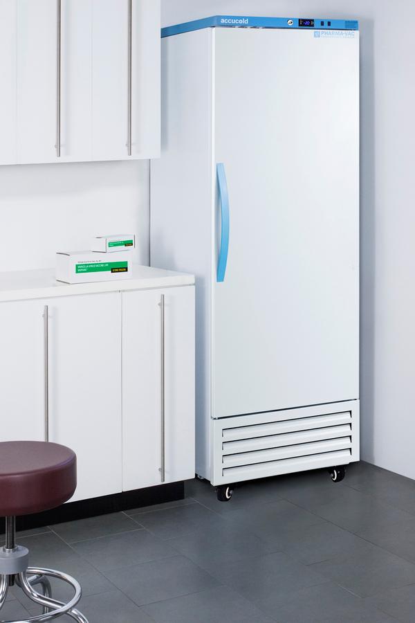 Accucold'S Pharma-Vac Performance Series Upright Freezers Are Designed And Purpose-Built For Pharmacy, Medication, And Vaccine Applications, Supporting Compliance With Cdc/Vfc/Vfa Guidelines. The Afs17Pvdl2B Is An Upright Frost-Free All-Freezer With A Temperature Range Of -30(Degree)C To -10(Degree)C As Recommended For Various Vaccines And Pharmaceuticals. The Microprocessor Temperature Controller Is Externally Located To Minimize Door Openings, Helping To Protect Stored Contents From Ambient Temperature. The Buffered Temperature Probe Is Encased In A Glycol-Filled Bottle To Better Simulate The Temperature Of The Stored Product, With An Additional Sensor That Reads Air Temperature To Ensure Superior Temperature Control. The Current And Min/Max Temperature Display Is Viewable In Celsius Or Fahrenheit . The Audible And Visual Temperature Alarm Sounds If The Unit'S Interior Goes Out Of Range. Additional Alarms Include A Power Failure Alert, Door Open Alarm, And Sensor Failure Alarm. This Model Is Equipped With Remote Alarm Contacts In The Rear And A 1/2" Probe Port On The Right Side To Accept Additional Monitoring Devices. A Hospital-Grade Cord With A 'Green Dot' Plug Is Also Included For Added Safety In High-Traffic Areas. We Also Include Our Dl2B Digital Data Logger To Be Mounted To The Door, A Feature Recommended By The Cdc, Vfc And Vfa For Vaccine Storage. This Password-Protected Ddl Is Nist Calibrated In Our Iso/Iec 17025:2017 Accredited Laboratory And Offers A Large Lcd Display Of The Current And High/Low Temperature, Recording Up To 32,000 Data Groups To Its Internal Memory Or Even More On The Included 4Gb Usb Flash Drive. Data Can Be Viewed Through A Pc Or Mac In Microsoft Excel Or Any .Csv Compatible Program. Users Can Set Their Own Recording Intervals Starting At Increments Of 10 Seconds To Best Meet A Facility'S Specific Logging Needs. We Include A 2-Year Certificate Of Calibration Beginning The Date Of Manufacture. The Logger Can Be Re-Calibrated In Our Laboratories After The Certificate Expires. (For Additional Information On The Ddl, See The Dl2Bkit Listing On Our Website.) Inside, This Freezer Has 14.83 Cu. Ft Of Storage Space And Features Six Adjustable Plastic-Coated Wire Shelves That Can Be Positioned At 1/2" Increments To Accommodate Virtually Any Sized Item. This Unit Includes Led Internal Lighting With An On/Off Rocker Switch. The Interior Is Constructed From White Powder-Coated Metal To Ensure Added Durability And Better Temperature Retention. The Afs17Pvdl2B Comes In A White Exterior Finish With A Blue Accented Control Panel. The Factory-Installed Antimicrobial Handle Is Powder-Coated With Naturally Occurring Silver Ions, Which Help To Reduce The Spread Of Germs, Allowing For A Safer, Cleaner User Experience. This Model Includes A Factory-Installed Lock And Ships With Two Keys For Staff Use. Powerful Magnetic Gaskets Ensure A Positive Seal. Four Pre-Installed 4" High Casters With Brakes Make It Easier To Move As Needed. Additional Sizes And Matching All-Refrigerators Are Also Available. Explore The Entire Pharma-Vac Series At Accucold.Com Note: Accucold Freezers Are Purpose-Built To The Support Meeting The Current Cdc (Centers For Disease Control) Guidelines For The Storage Of Vaccines. As Referenced In The Current Vaccine Storage And Handling Toolkit, These Units Incorporate Microprocessor Controls, As Well As A Calibrated Digital Data Logger (Ddl) To Display The Current And High/Low Temperature.