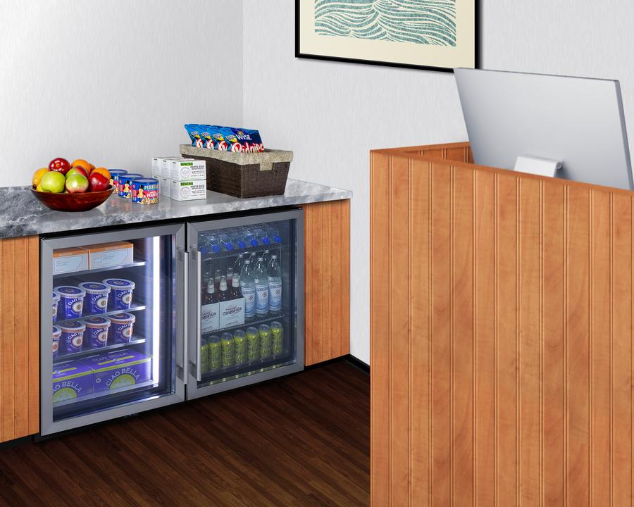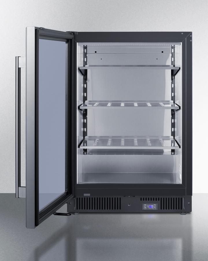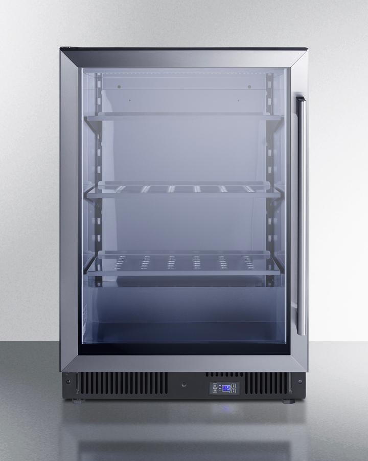 Summit'S Commercial Series Of Undercounter Freezers Offers An Attractive Display For Maximizing Impulse Sales And Keeping Products Under Reliable Cold Storage Conditions. The Scf475Lhd Is A Frost-Free Freezer With An Easy-Fitting 24" Footprint And A Front-Breathing Design Ideal For Built-In Installation Under Counters. The Stainless Steel Trimmed Door Features Triple-Pane Tempered Glass That Is Vacuum Insulated With A Low-E Coating, Helping To Improve Energy Efficiency And Ensure Items Are On Full Display. Led Lighting In The Side Walls Helps To Provide Attractive Illumination. For Increased Security, The Unit Features A Factory-Installed Lock In The Kickplate. The Digital Thermostat Is Externally Located For Easy Temperature Management. This Unit Comes With A Left-Hand Door Swing And Pro Style Handle. Inside, The Scf475Lhd Features 5.14 Cu.Ft Of Storage Space And Stainless Steel Construction For Improved Durability And Sanitation. A Commercial-Grade Cantilevered Shelving System Allows Flexible Storage. Three Perforated Steel Shelves Are Designed To Hold Up To Heavy Duty Commercial Use And Ensure Proper Cold Air Circulation. This Freezer Includes A Superfreeze Setting, Which Is Great For Freezing Newly Loaded Foods Quickly. Additional Features Include An Open Door Alarm, High-Temperature Alarm, And Sabbath Mode Setting That Lets You Disable Some Of The Electrical Elements During Periods Of Observance. The Scf475Lhd Is Etl-S Listed To Nsf-7 For Use In Commercial Settings. With Its Deluxe Style, User-Friendly Features, And Low Maintenance Frost-Free Operating System, This Freezer Offers Premium Value For Bars, Restaurants, Hotel Marketplaces, And Other Commercial Environments. Create A Matching Set By Pairing This With The Scr610Bl, Our 24" Wide Stainless Steel Beverage Center.