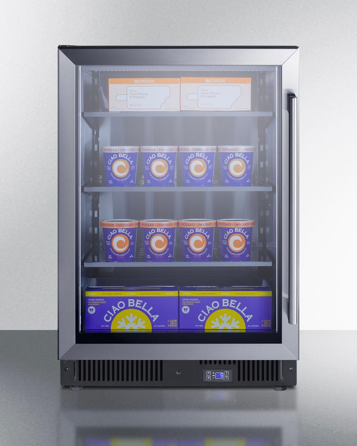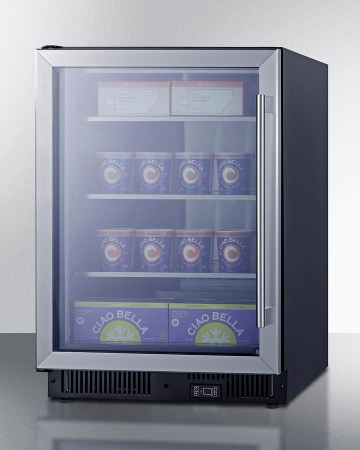 - 24" wide 5.14 cu.ft. built-in frost-free freezer with glass door for easier visibility in commercial settings