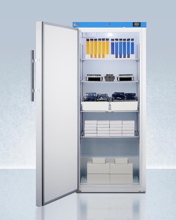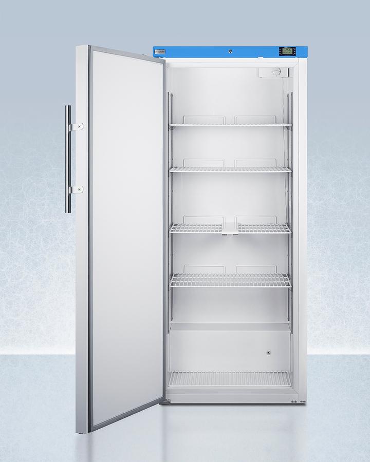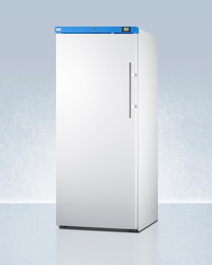 Accucold'S General Purpose Storage Line Includes Upright Manual Defrost Freezers Designed For The Storage Of Certain Enzymes, Reagents, Samples, And Other Materials Used In Laboratory And Clinical Settings That Require -20 C Temperatures With More Stability Than Traditional No-Frost Equipment. Model Ufm19Wlhd Is A Front-Opening Freezer With An 18.3 Cu.Ft. Interior Storage Capacity. Manual Defrost Operation Ensures A More Stable Interior With None Of The Warming Cycles That Can Compromise Temperature In Traditional Frost-Free Cooling Systems. The Dial Thermostat Is Located Inside To Prevent Accidental Temperature Adjustments, With A Thermometer/Alarm Mounted Externally To Ensure A Readout Of The Current And High/Low Interior Temperature Is Visible Without Opening The Door. The Temperature Probe Is Encased In Glass Beads And Positioned In A Fixed Shelf In The Center Of The Unit To Best Simulate The Temperature Of Stored Items. We Include An Additional Probe Hole To Accommodate Additional Monitoring Equipment. Cantilevered Shelving Provides More Flexibility In Storage, With Tight Spacing Between The Pilasters So You Can Adjust As Needed. This Unit Has A Flat Door Liner To Accommodate Deeper Trays. An Automatic Led Light Makes It Easy To See The Full Interior. This Freezer Comes In A White Exterior Finish With A Blue Accent On The Front. The Keyed Lock Is Conveniently Located Towards The Top Of The Unit For Easier User Access. The Door Includes An Easy-Grip Handle In A Brushed Aluminum Finish And Comes With A Left Hand Swing. This Unit Includes A 9'5" Long Power Cord With A Hospital Grade 'Green Dot' Plug For A More Secure Connection, Ideal For High Traffic Environments. The Cooling System Utilizes Hydrocarbon Refrigerant For A Greener Footprint. For Advanced Insulation, The Door Features A Vacuum Seal That Keeps All Cold Air Inside. The Ufm19Wlhd Meets Nsf-7 Commercial Standards And Is Etl Listed For The U.S. And Canada. It Matches Refrigerator Model Urm19W. It Can Be Customized With Additional Features To Best Meet Your Storage Needs, Including Digital Data Loggers (Ddls). For More Information, Contact Our Product Specialists At 718-893-3900. In Addition To This Freezer, Accucold Manufactures Frost-Free Choices For Vaccine And Laboratory Storage, As Well As Purpose-Built Refrigeration Lines Approved To The Nsf/Ansi 456 Vaccine Storage Standard.