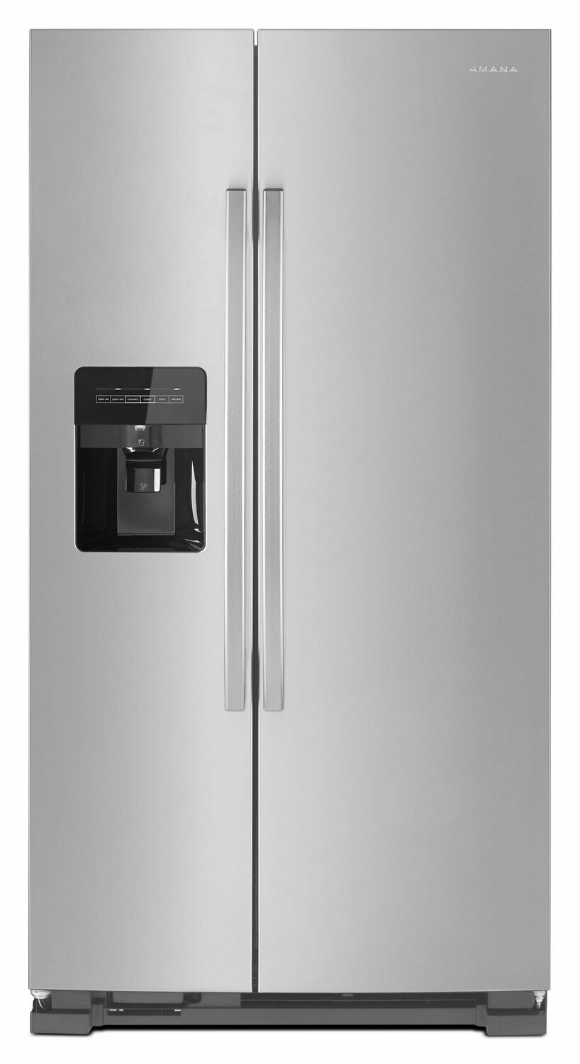 Our 33-Inch Amana® Side-By-Side Refrigerator Is Great For Smaller Spaces, Giving You The Right Amount Of Storage Room. This 21 Cu. Ft. Refrigerator With Ice And Water Dispenser Lets You Grab Fresh H2O With A Dual Pad Dispenser With Everydrop Water Filter. Easily Set Temps With Electronic Temperature Controls. And Big Items Fit In The Gallon Door Storage Bins.