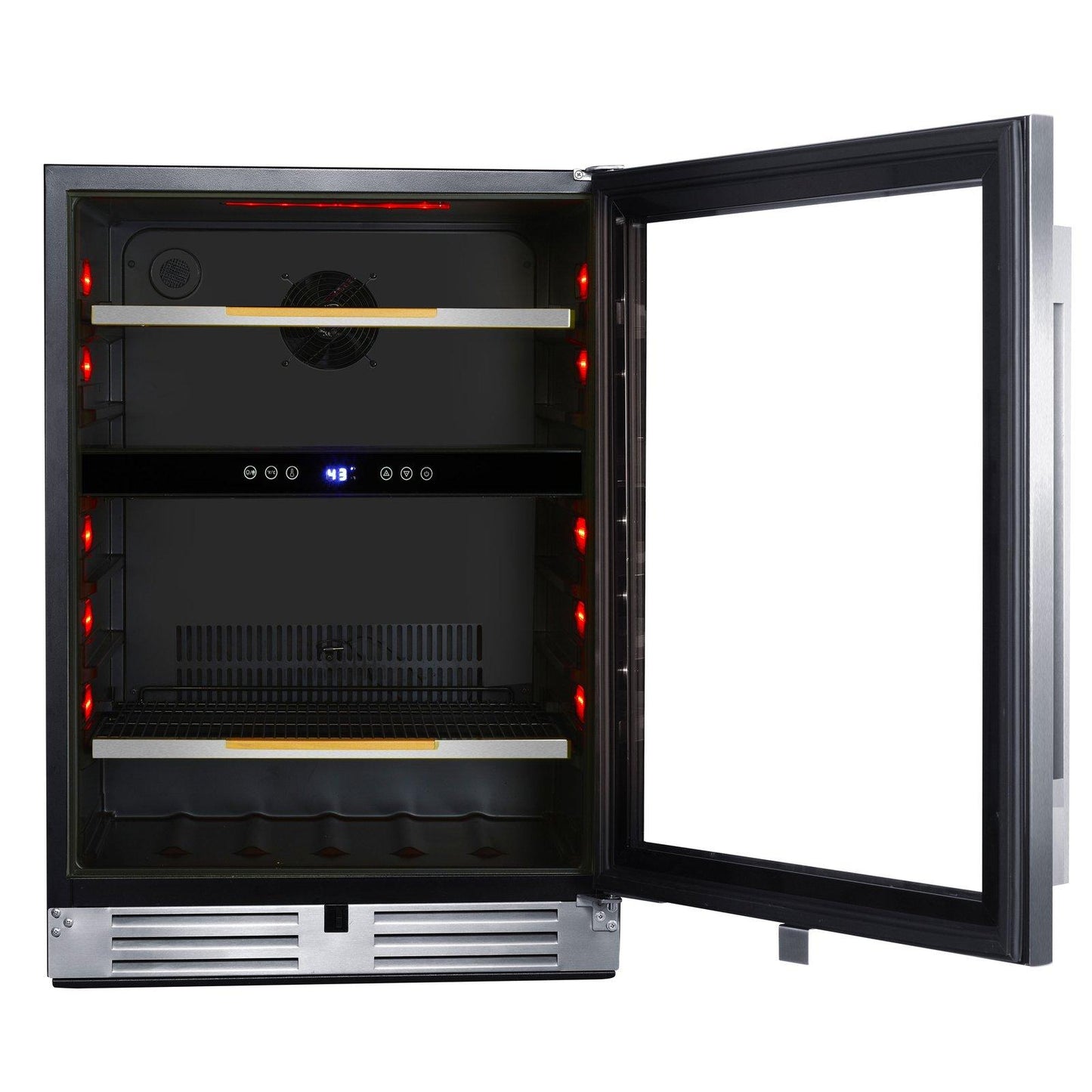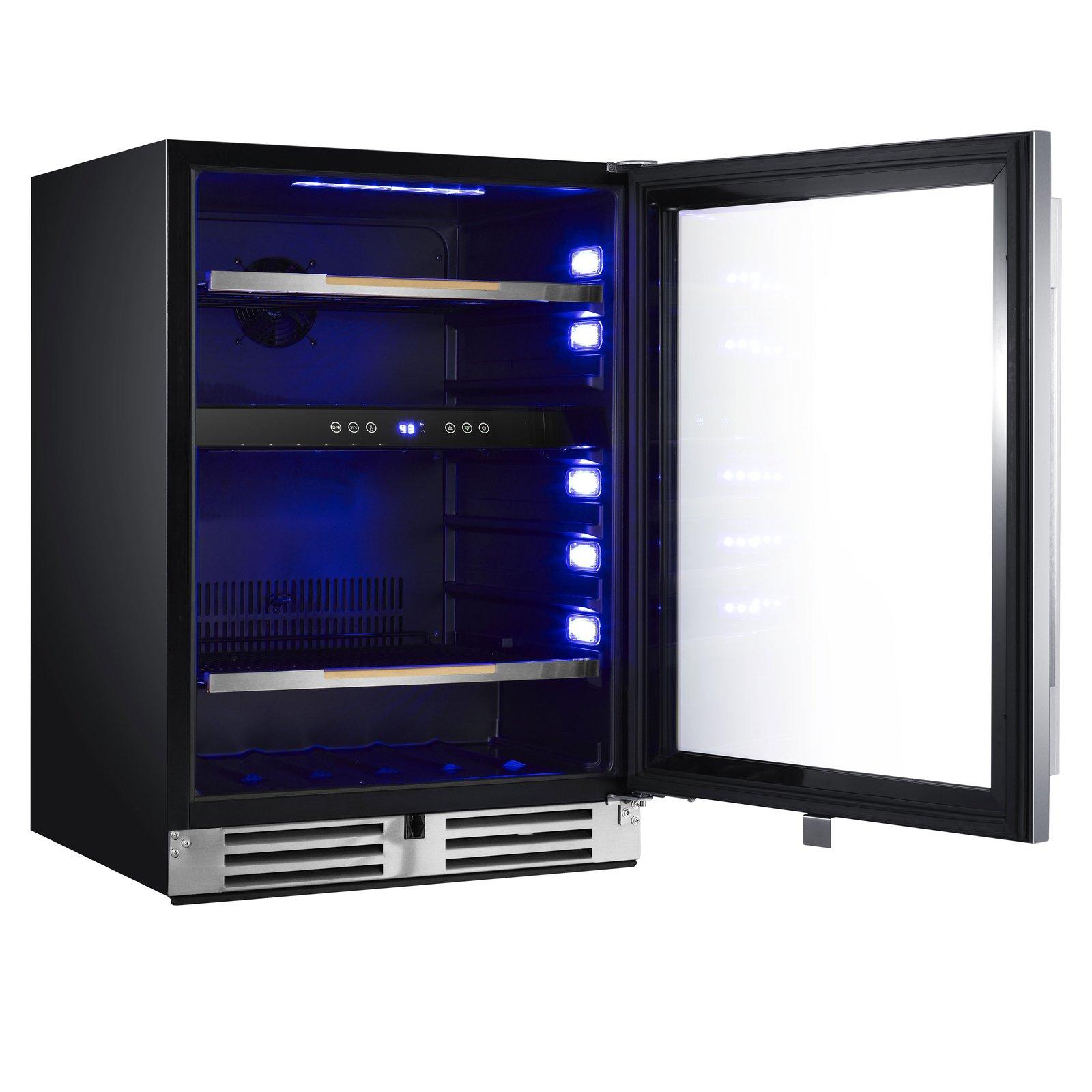 Keep your favorite drinks close by in the compact, 5.4 cubic feet black beverage cooler with stainless steel frame and double pane tempered glass door from Avanti.