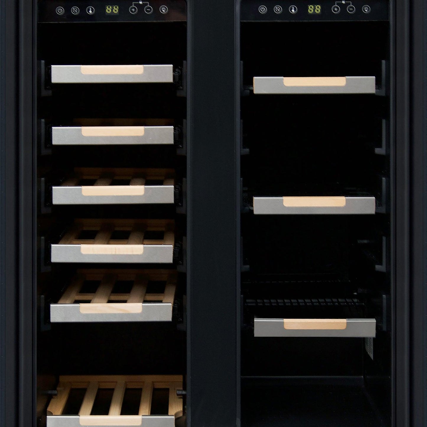 - Pull-out wooden shelves on roller assembly with 50% extension in the wine cooler