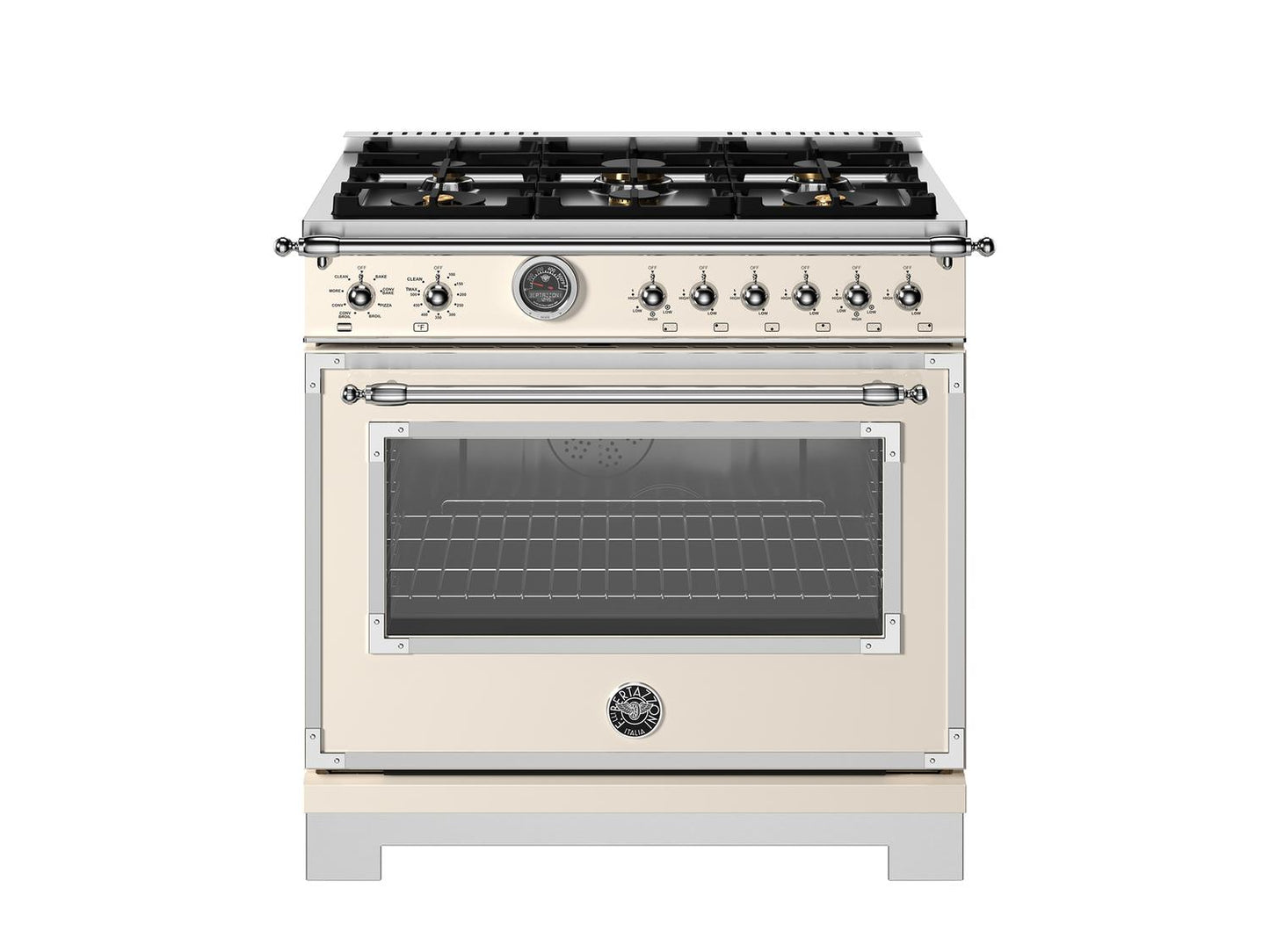 Bertazzoni HER366BCFEPAVT range_continuous_grates36 Inch Dual Fuel Range, 6 Brass Burner And Cast Iron Griddle, Electric Self-Clean Oven Avorio