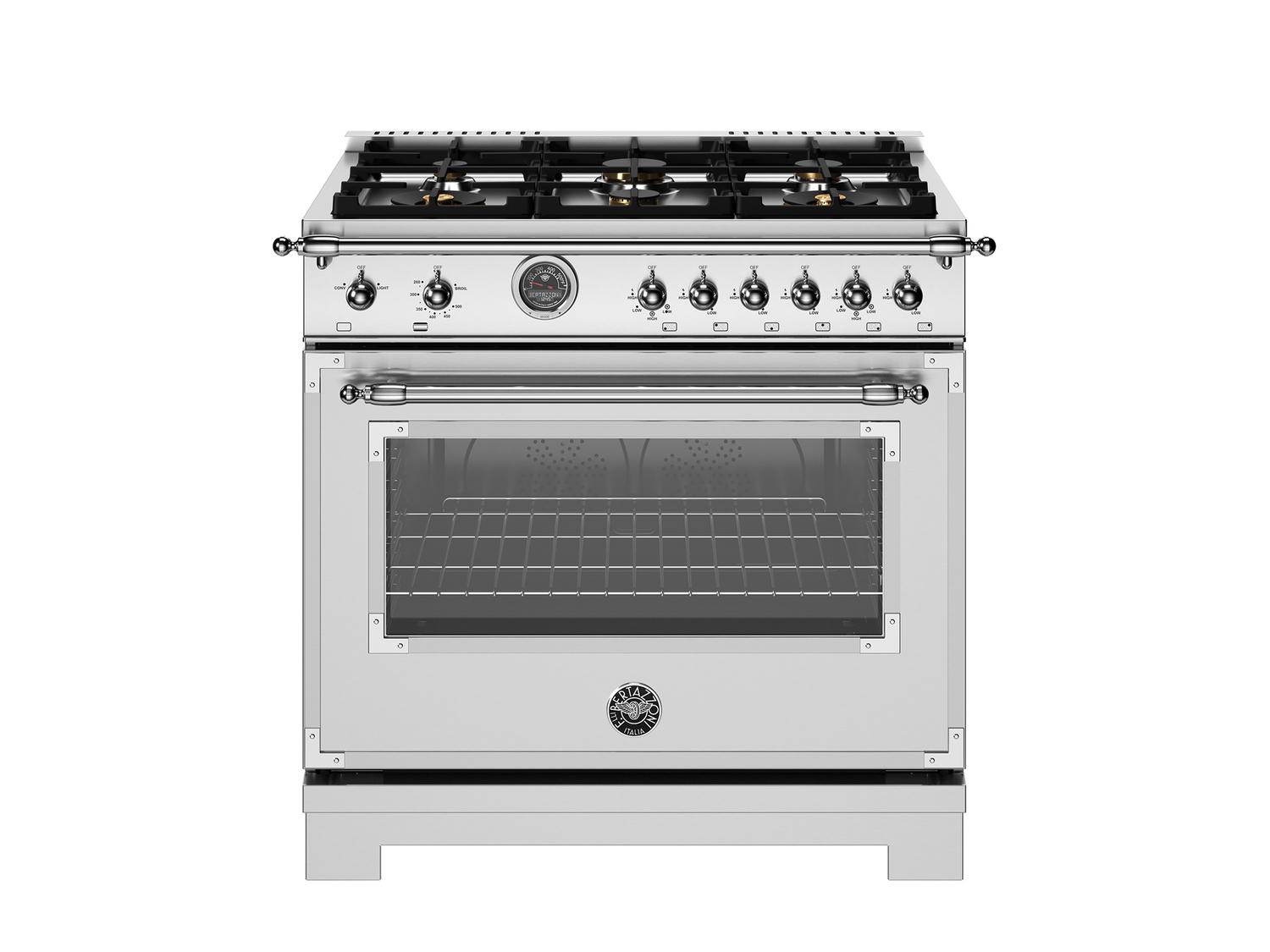 Bertazzoni HER366BCFGMXT 36 Inch All Gas Range, 6 Brass Burners And Cast Iron Griddle Stainless Steel