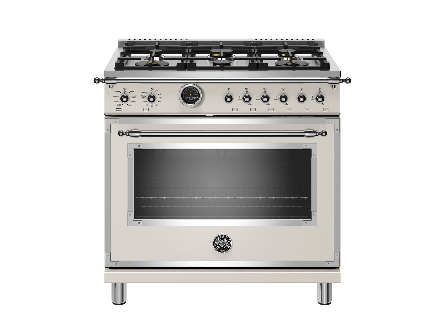 Bertazzoni HERT366DFSAVT 36 Inch Dual Fuel Range, 6 Brass Burner, Electric Self-Clean Off-White