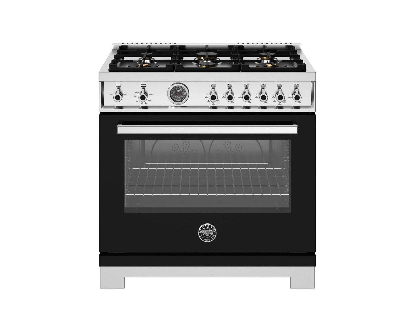 36 inch All Gas Range, 6 Brass Burners and Cast Iron Griddle Nero