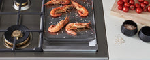 The high-efficiency maintop with 6 brass burners and electric griddle features 2 dual ring 19,000 BTU power-burners that boil water in under 6 minutes (best in class), and 4 additional MonoBloc burners of variable size and power to suit every style of cooking, with delicate simmer at 750 BTUs. The stainless steel griddle with integrated cover provides additional cooking options.