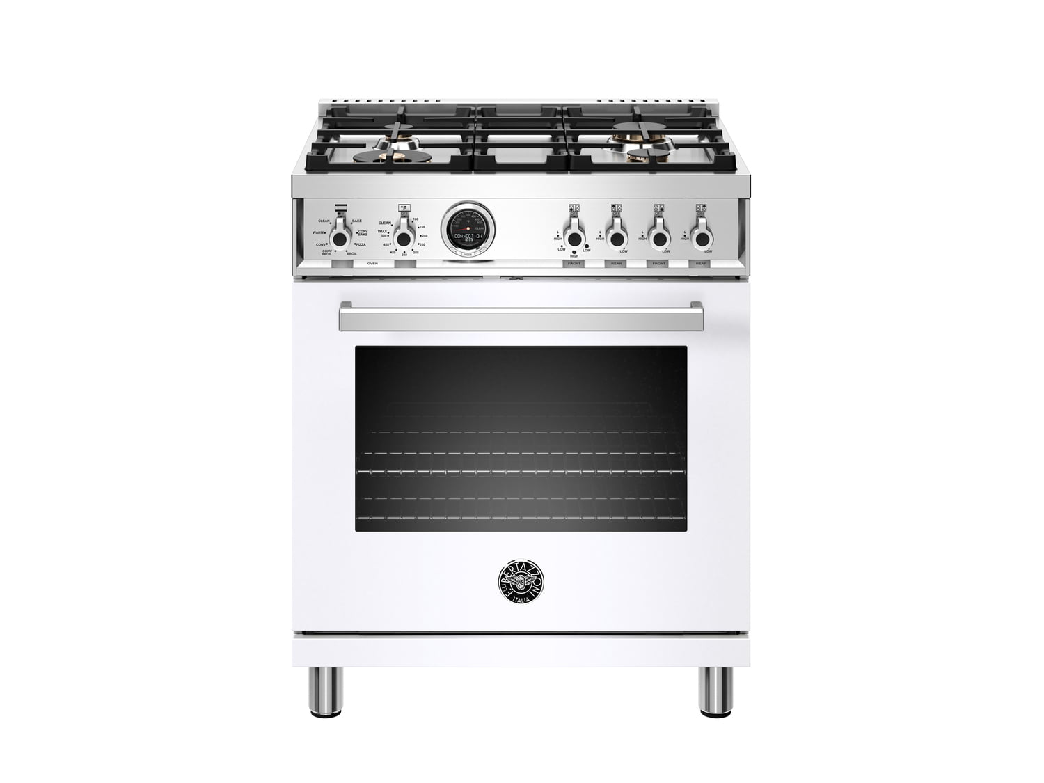 Bertazzoni PROF304DFSBIT 30 Inch Dual Fuel Range, 4 Brass Burner, Electric Self-Clean Oven Bianco