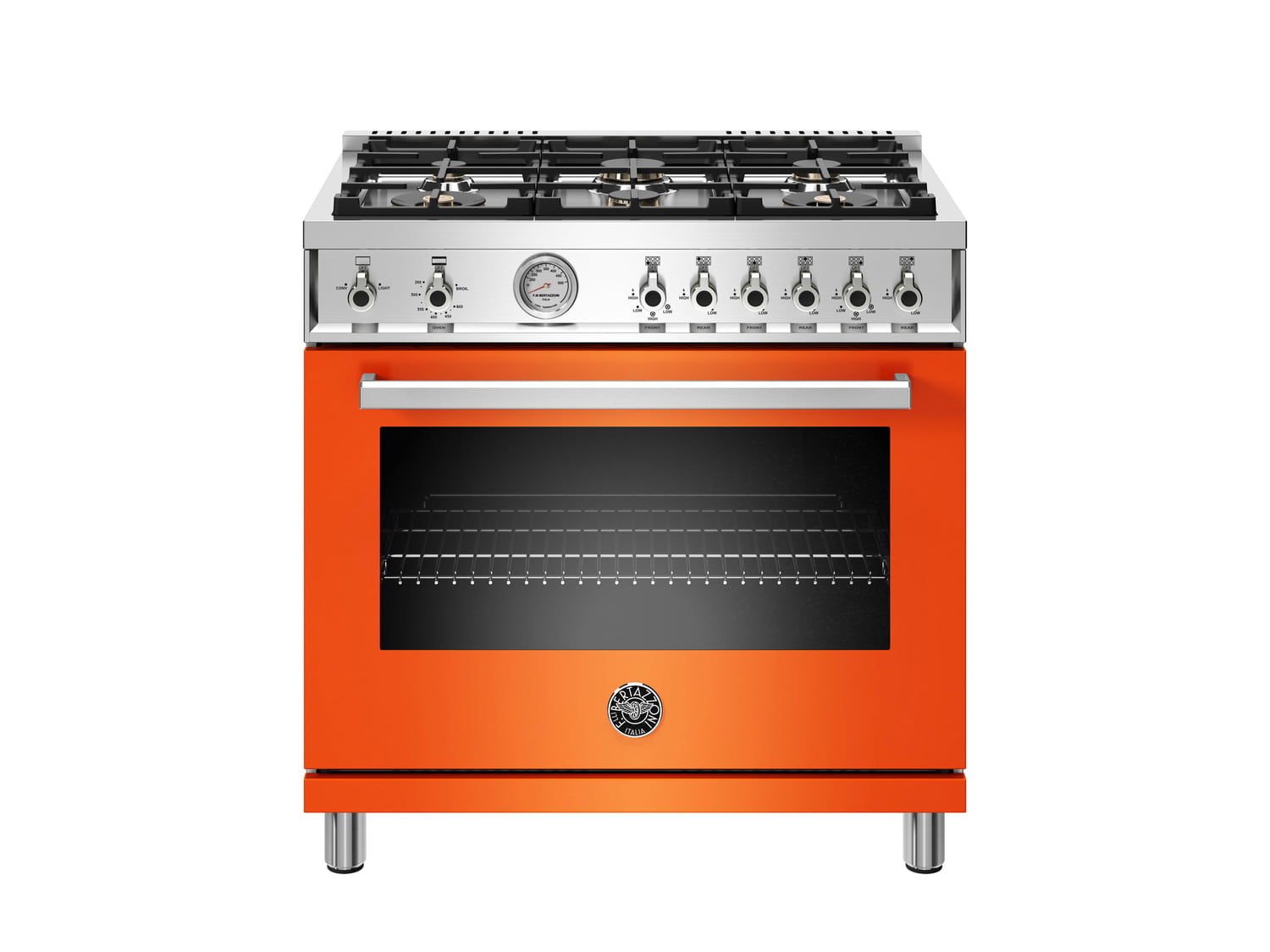 Bertazzoni PROF366GASART 36 Inch All Gas Range, 6 Brass Burners Arancio