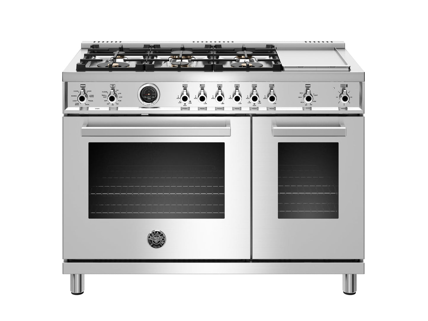 Bertazzoni PROF486GDFSXT 48 Inch Dual Fuel Range, 6 Brass Burners And Griddle , Electric Self Clean Oven Stainless Steel