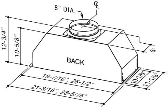 - Perimeter Aspiration maximizes flow at the hood edges; the flat stainless panel provides a clean filterless look; available in 28-5/16" width