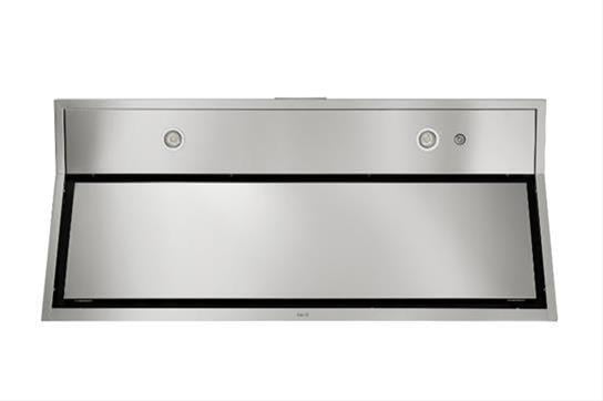 - Perimeter Aspiration maximizes flow at the hood edges; the flat stainless panel provides a clean filterless look