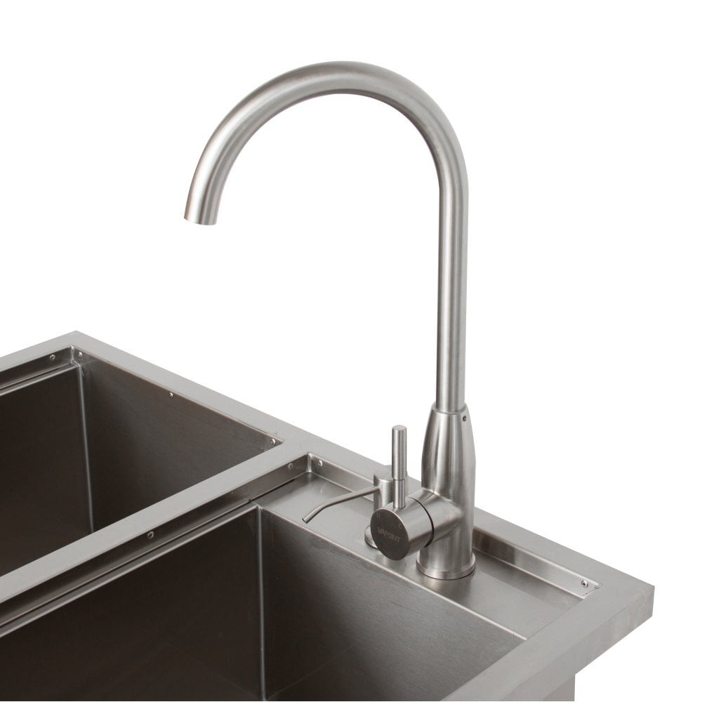The Blaze Beverage Center Was Designed With Both Style And Usability In Mind. For Quick And Easy Access, There Is An Attached Bottle Opener, A Built-In Soap Dispenser, A Front Bottle Storage And A Removable Three-Part Condiment Tray. Plus, Blaze Includes A Cutting Board That Slides Across The Sink And Can Be Removed For Extra Space. Made From 304 Stainless Steel, This Beverage Center Is Both Durable And Stylish With A Sleek Design And Curved Edges. This Beverage Center Fits Perfectly In Any Outdoor Kitchen.