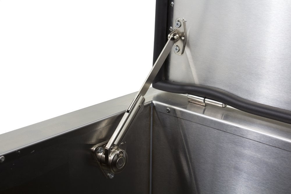 - Hydraulic-like bracket holds the lid open