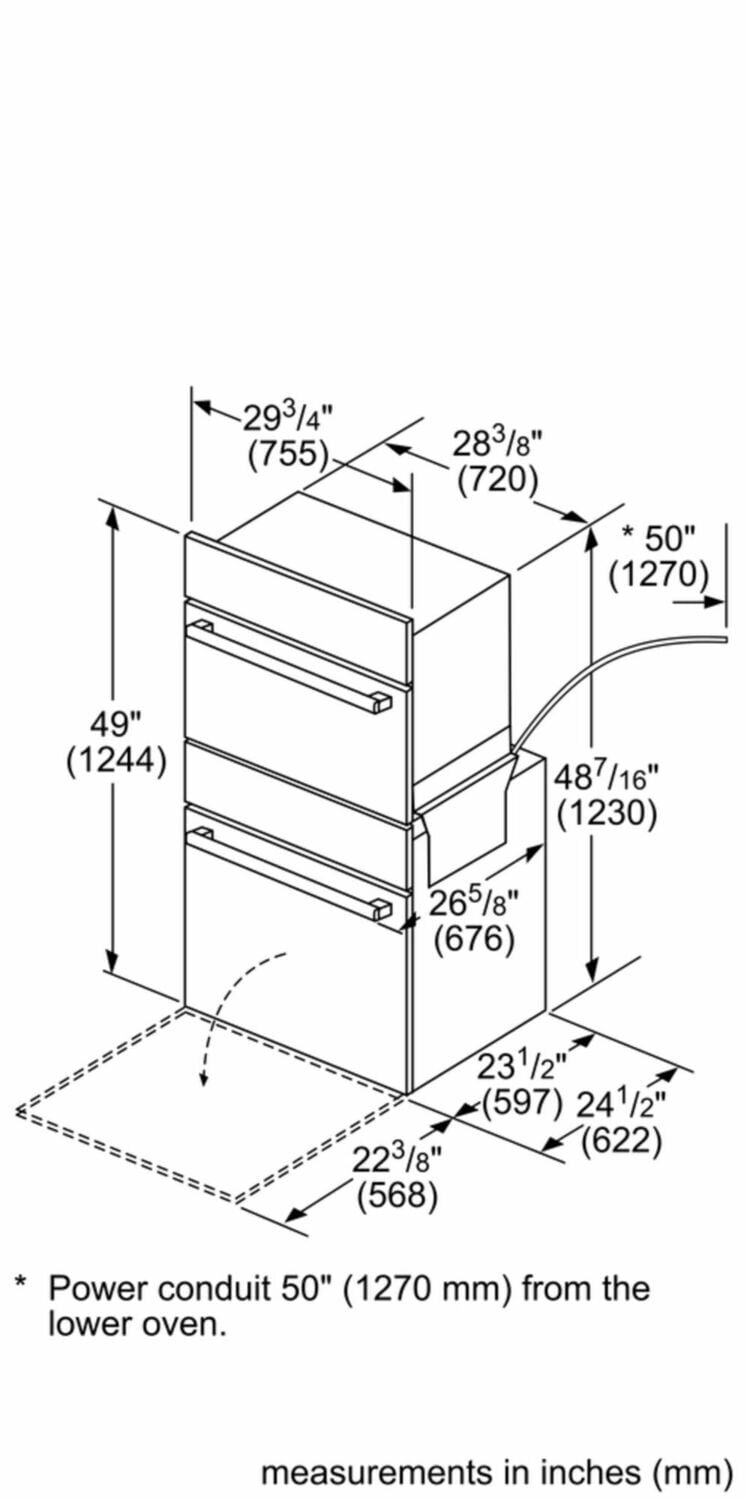 | Required cutout size (HxWxD) (in) | 45 5/8'' x 28 1/2'' x 23 1/2'' |