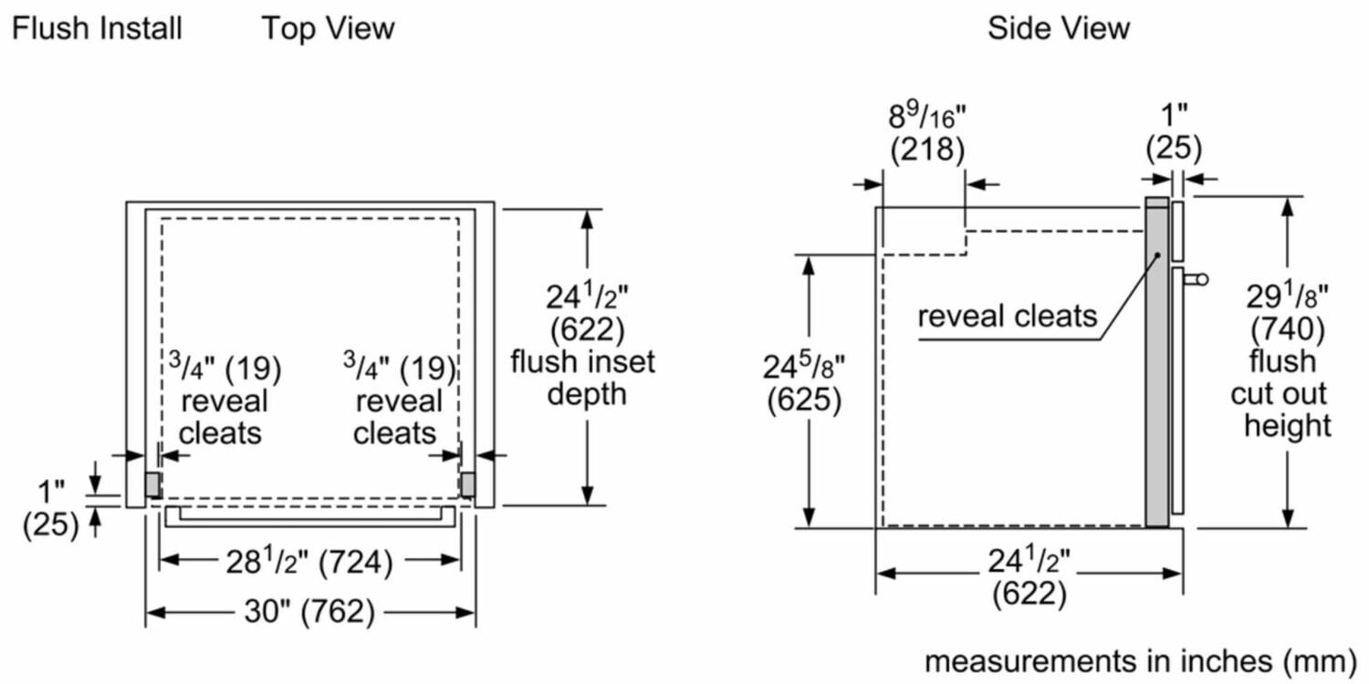 | Required cutout size (HxWxD) (in) | 27'' - 28 5/8'' x 28 1/2'' x 23 1/2'' |
