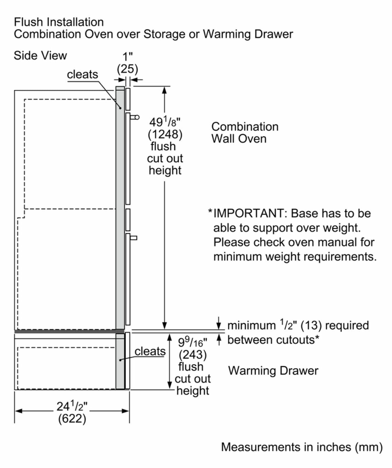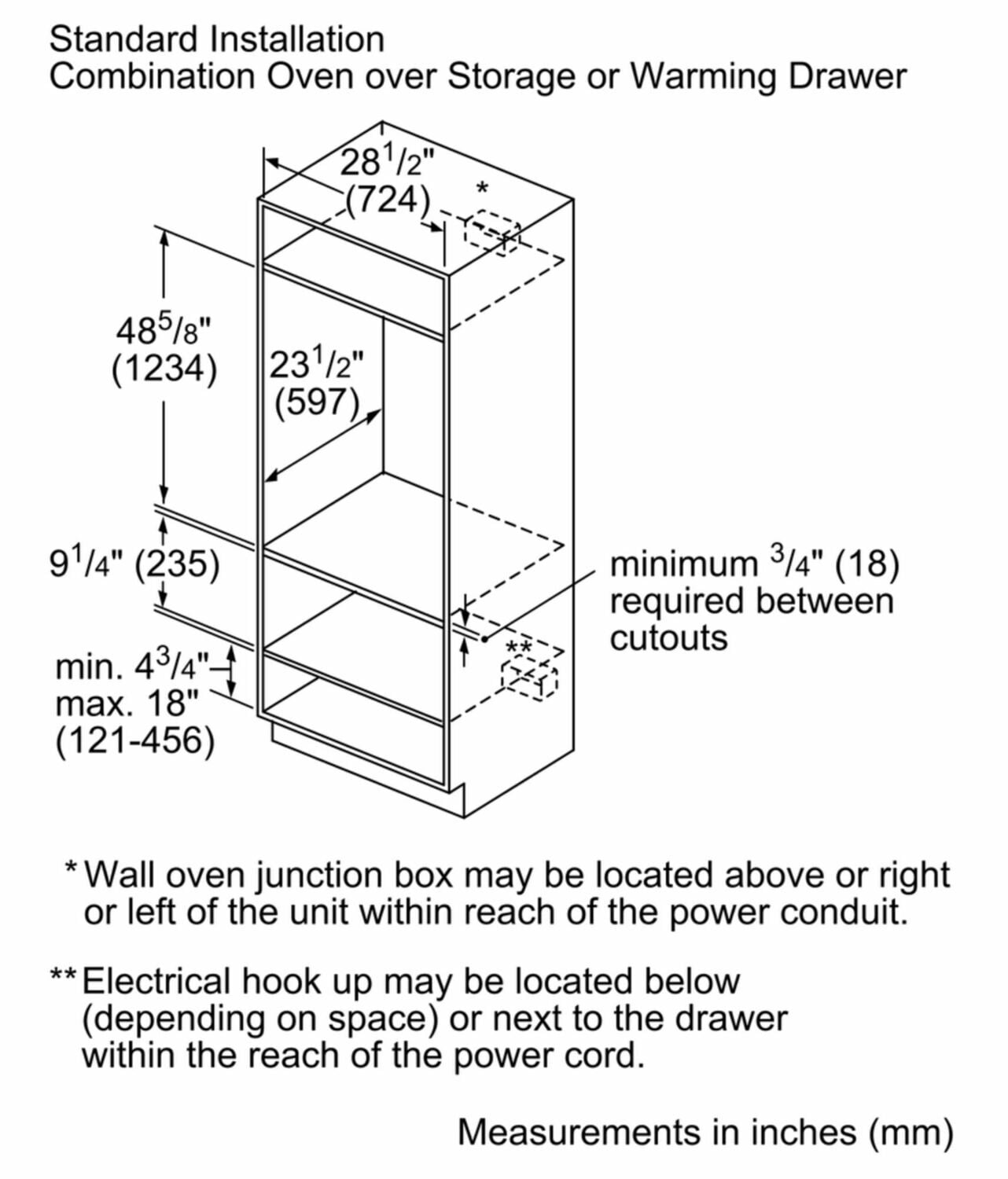 | Required cutout size (HxWxD) (in) | 48 5/8' x 28 1/2' x 23 1/2' |