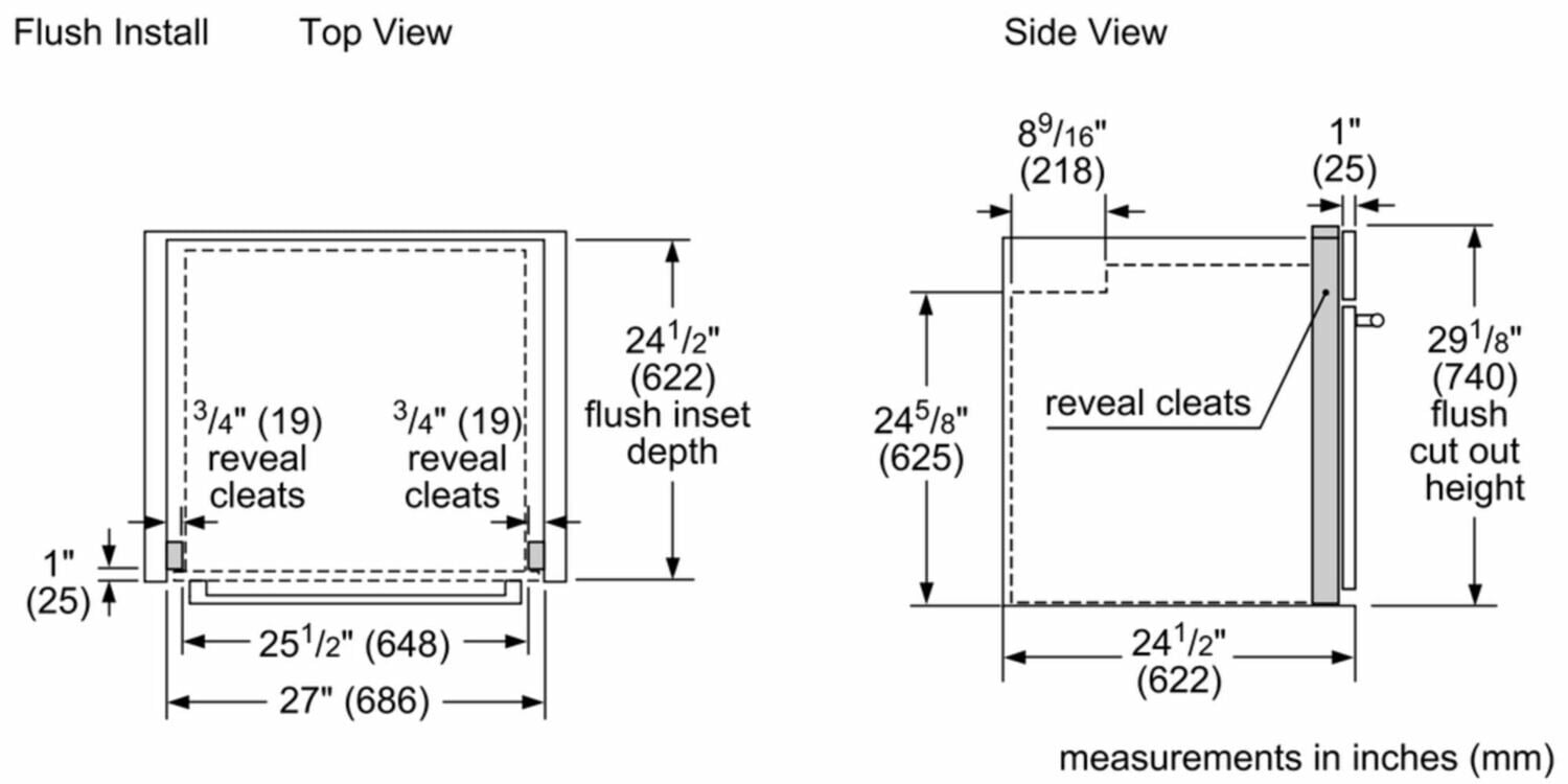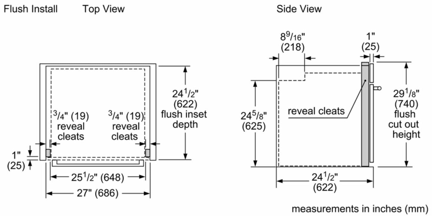 | Required cutout size (HxWxD) (in) | 27'' - 28 5/8'' x 25 1/2'' x 23 1/2'' |