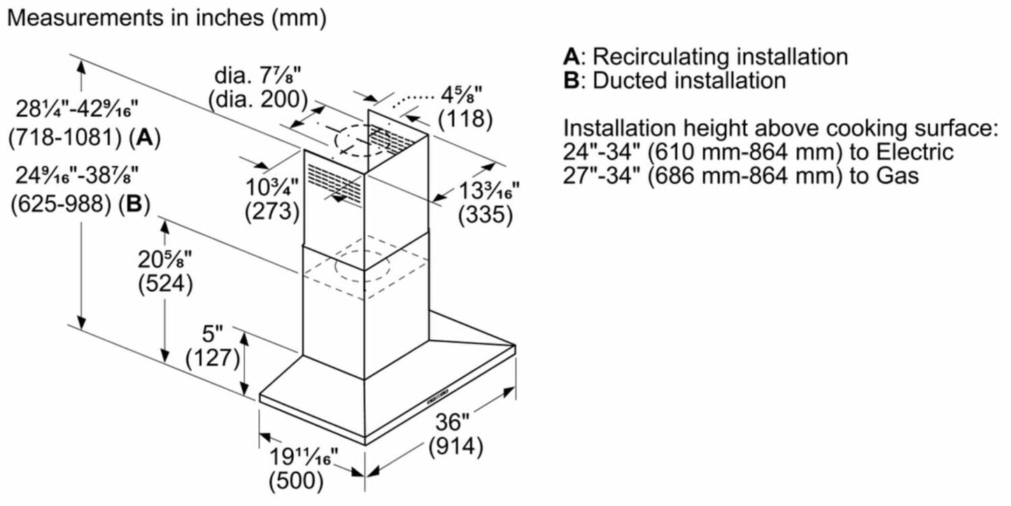 | Operating Mode | Convertable: Ducted / Recirculating |