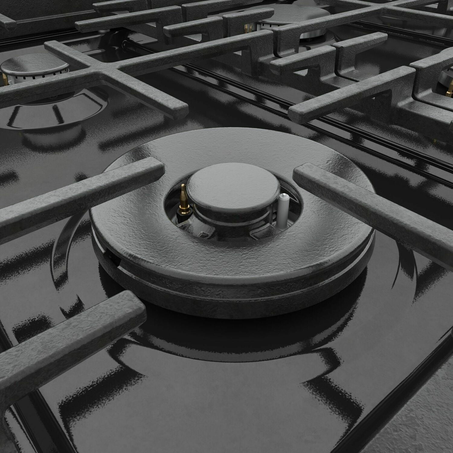 - The continuous grate design allows you to easily slide heavy pots and pans.