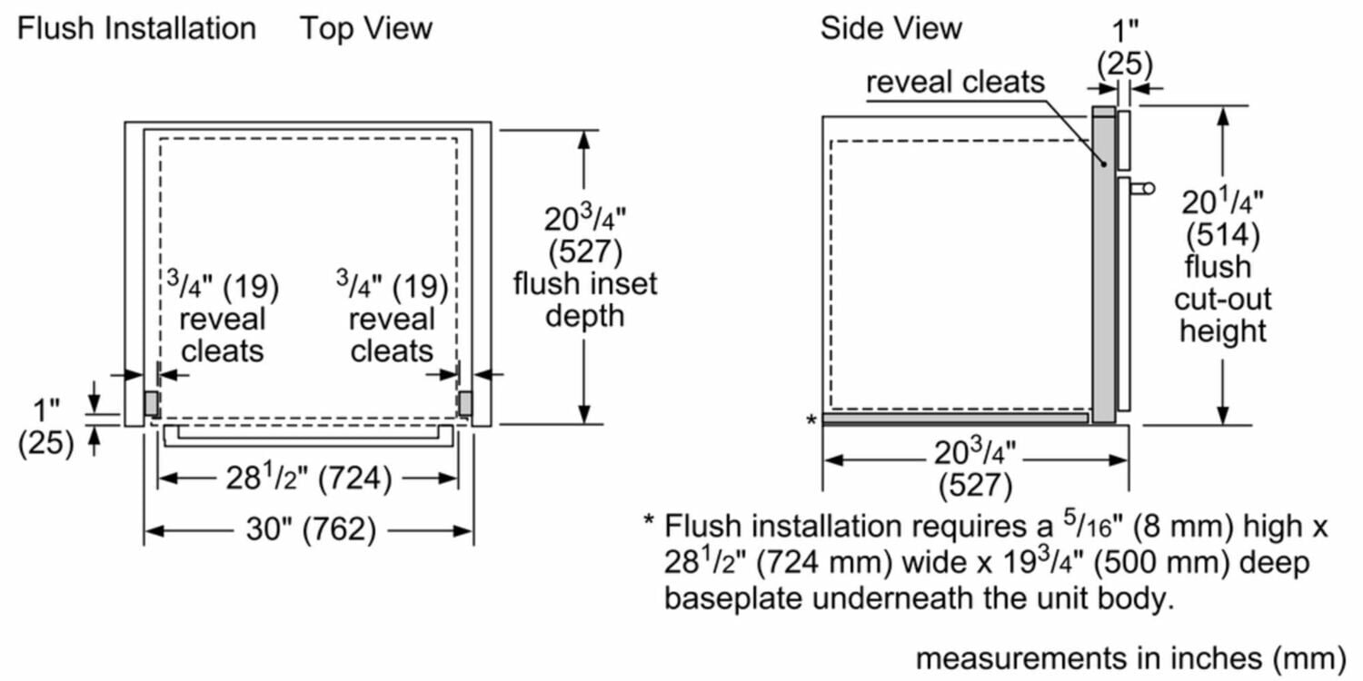 - Flush install matches Bosch wall oven, steam oven, or warming drawer.