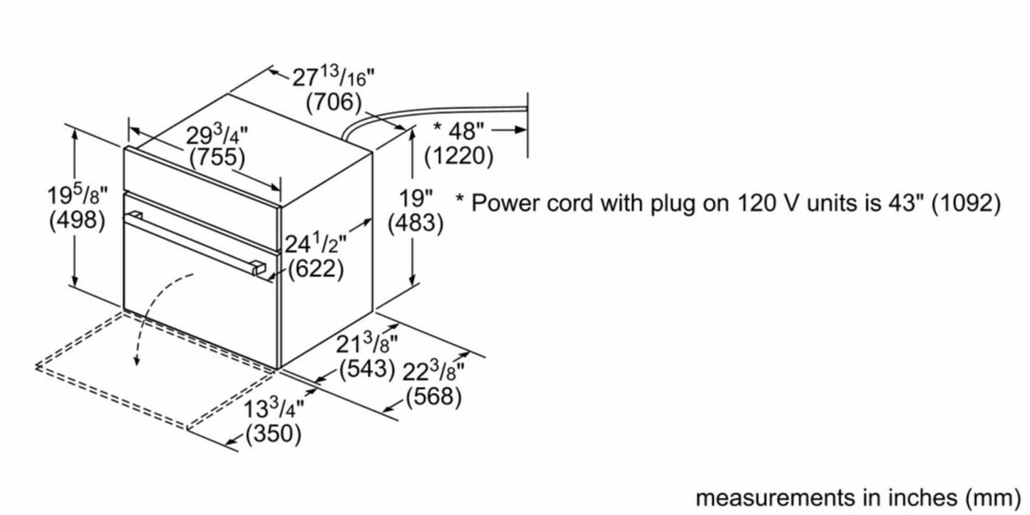 | Overall appliance dimensions (HxWxD) (in) | 19 5/8'' x 29 3/4'' x 21 3/8'' |
