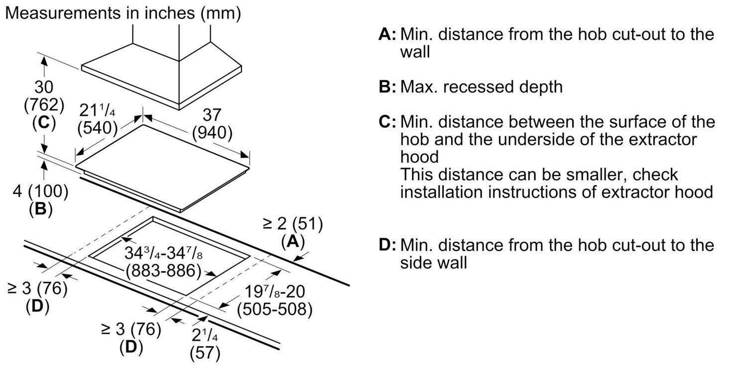 | Minimum distance from counter front (in) | 2 1/4 |