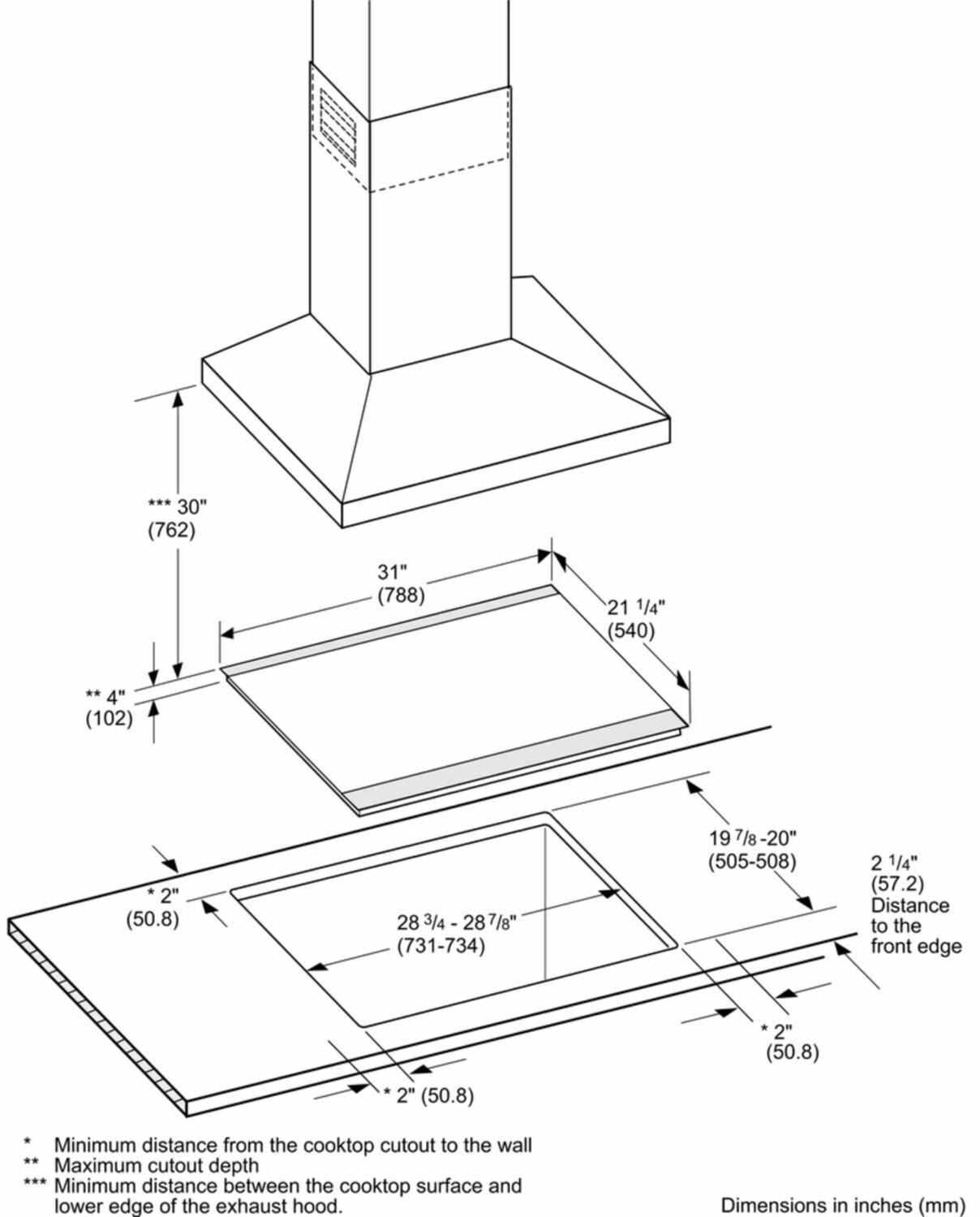 | Minimum distance from counter front (in) | 2 1/4' |