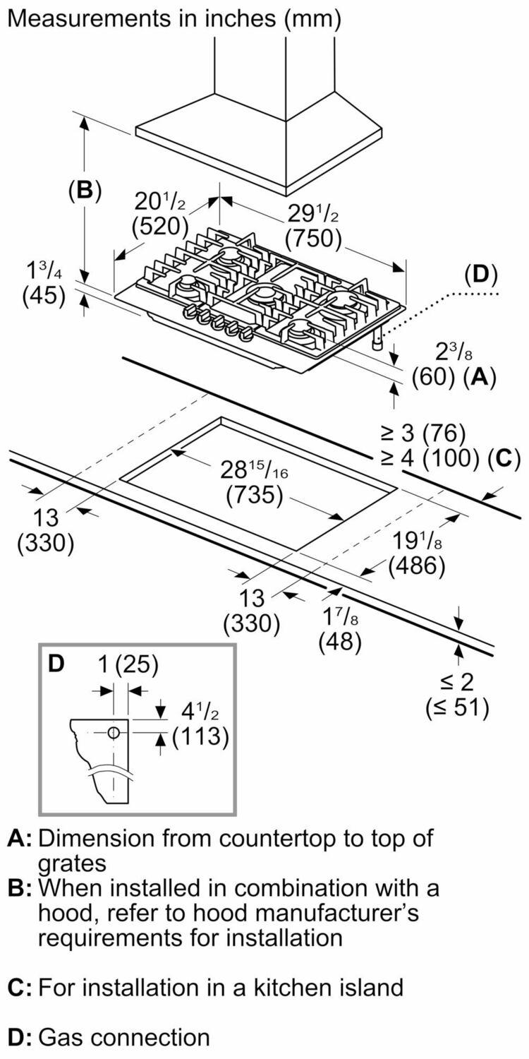 Technical Overview Overall Appliance Dimensions (HxWxD) (in) 2 13/64" x 29 1/2" x 20 1/2'' Required Cutout Size (HxWxD) (in) 2 13/64" x 28 15/16'' x 19 1/8''
