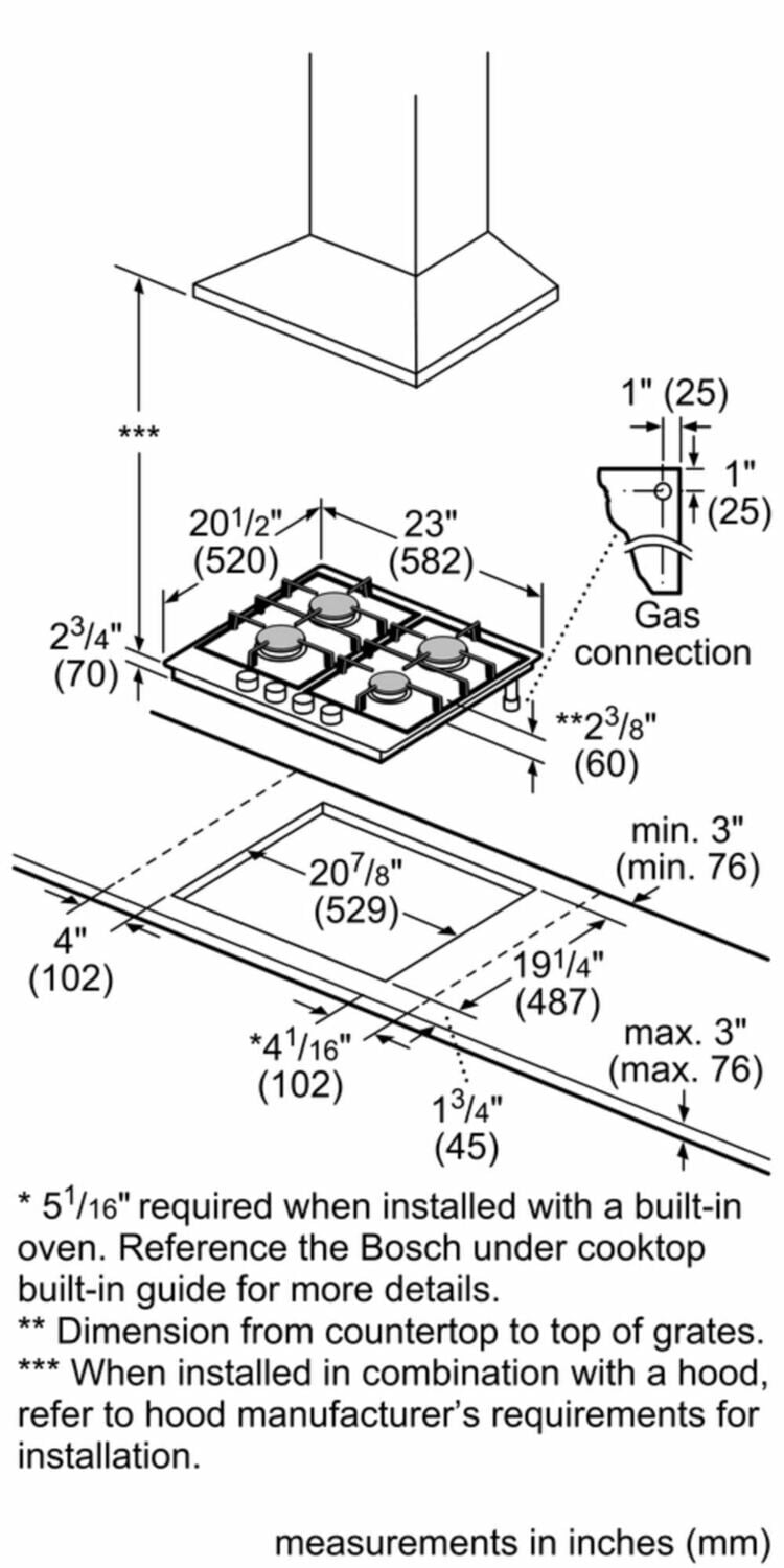 | Overall appliance dimensions (HxWxD) (in) | + 2 3/4' x 23' x 20 1/2' |