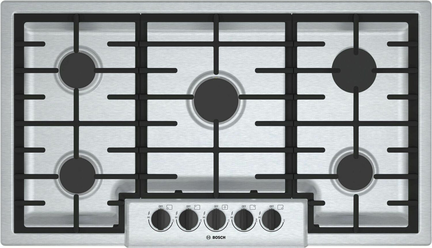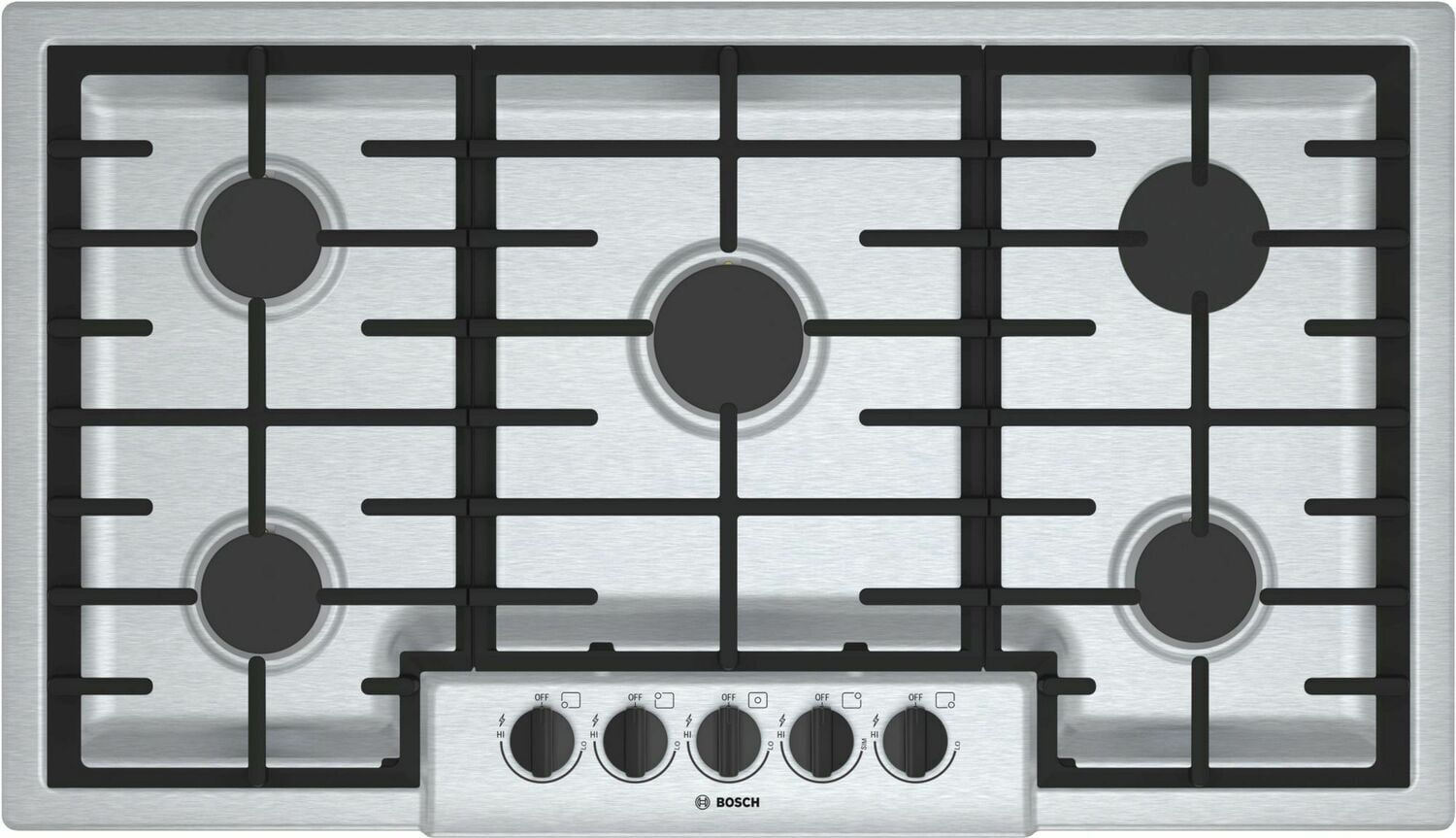 Bosch NGM5656UC 500 Series, 36" Gas Cooktop, 5 Burners, Stainless Steel
