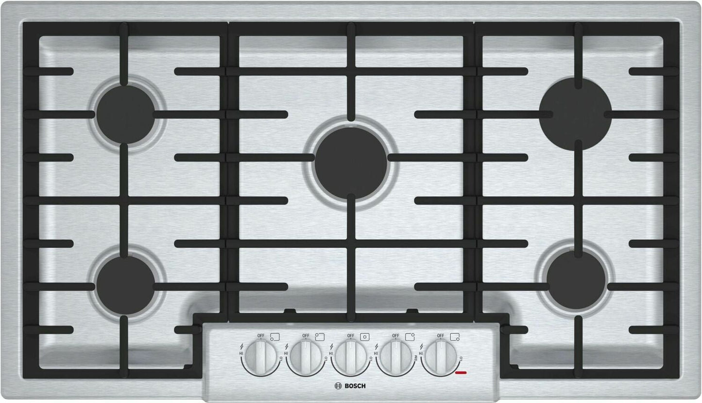 Bosch NGM8656UC 800 Series, 36" Gas Cooktop, 5 Burners, Stainless Steel