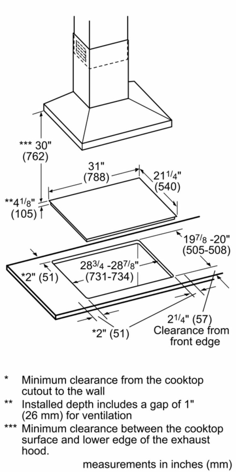 | Overall appliance dimensions (HxWxD) (in) | 1/4'' + 4 1/8'' x 31'' x 21 1/4'' |