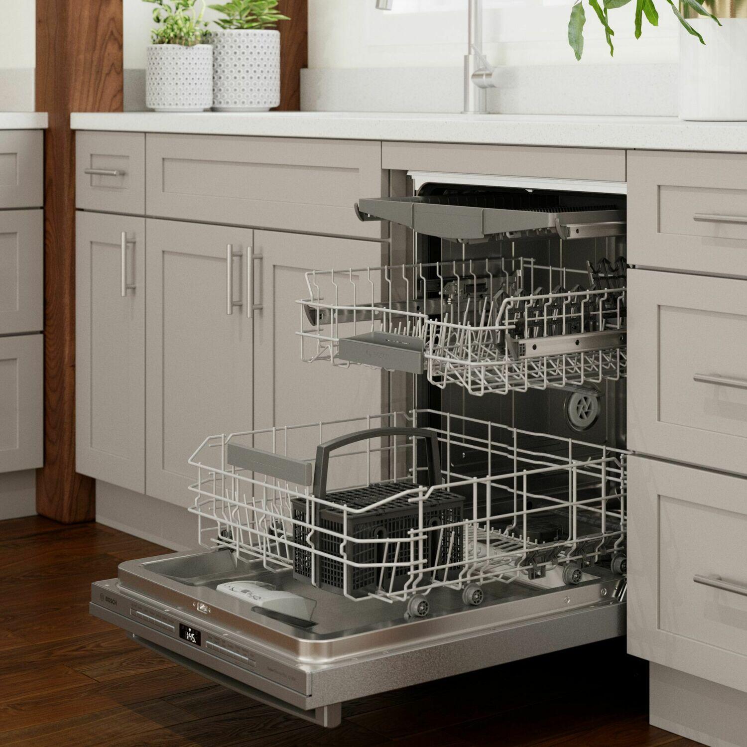 Bosch dishwashers are whisper quiet so you never have to wait until bedtime to run the dishwasher. Some of the 18 ways we approach noise reduction includes: multiple insulation layers, grindless food filtration, our EcoSilence motor system, and a sound absorbing base. *Based on an average of sound ratings for 24" full-size stainless steel tub dishwashers contained in major brands' websites. Major brands defined as TraQline Top 5 Market Share, December 2019.