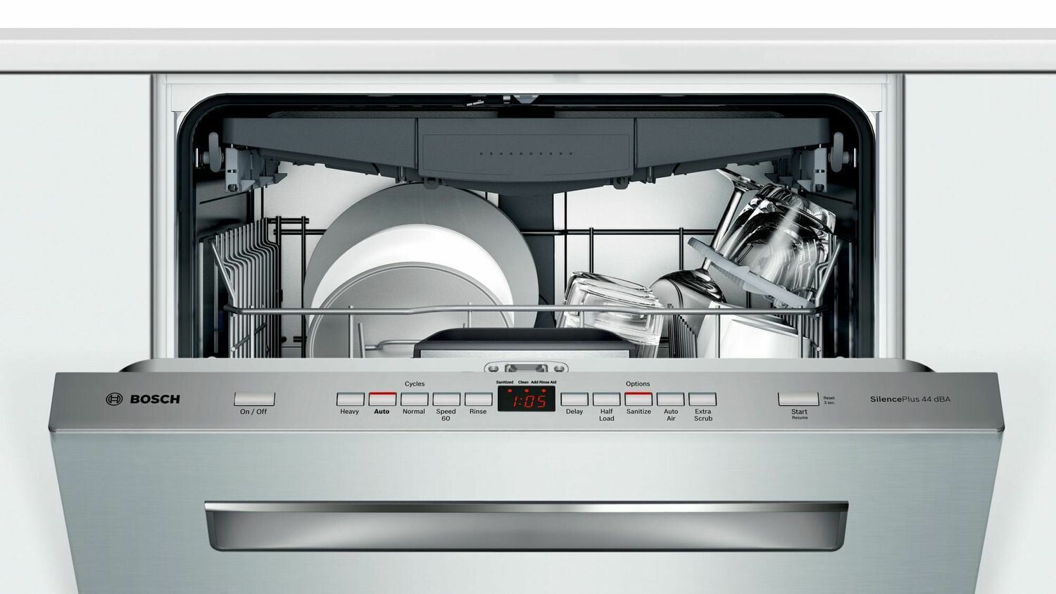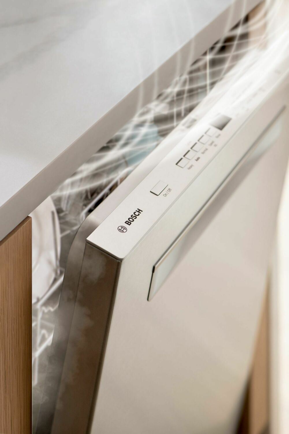 Bosch dishwashers are whisper quiet so you never have to wait until bedtime to run the dishwasher. Some of the 18 ways we approach noise reduction includes: multiple insulation layers, grindless food filtration, our EcoSilence motor system, and a sound absorbing base. *Based on an average of sound ratings for 24" full-size stainless steel tub dishwashers contained in major brands' websites. Major brands defined as TraQline Top 5 Market Share, December 2019.