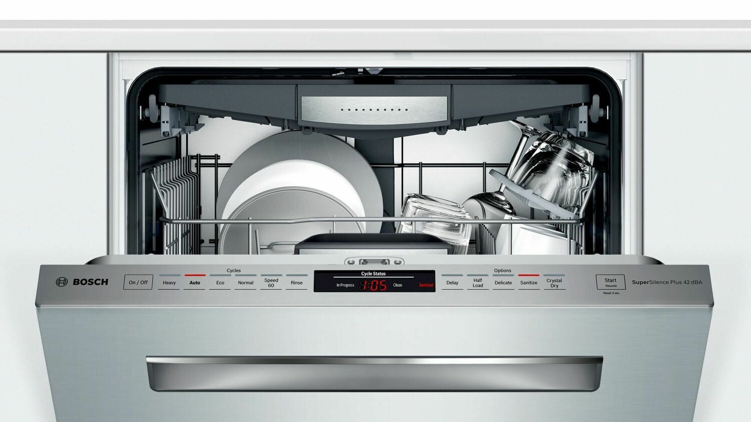 Bosch dishwashers are whisper quiet so you never have to wait until bedtime to run the dishwasher. Some of the 18 ways we approach noise reduction includes: multiple insulation layers, grindless food filtration, our EcoSilence motor system, and a sound absorbing base. *Based on an average of sound ratings for 24" full-size stainless steel tub dishwashers contained in major brands' websites. Major brands defined as TraQline Top 5 Market Share, December 2019.