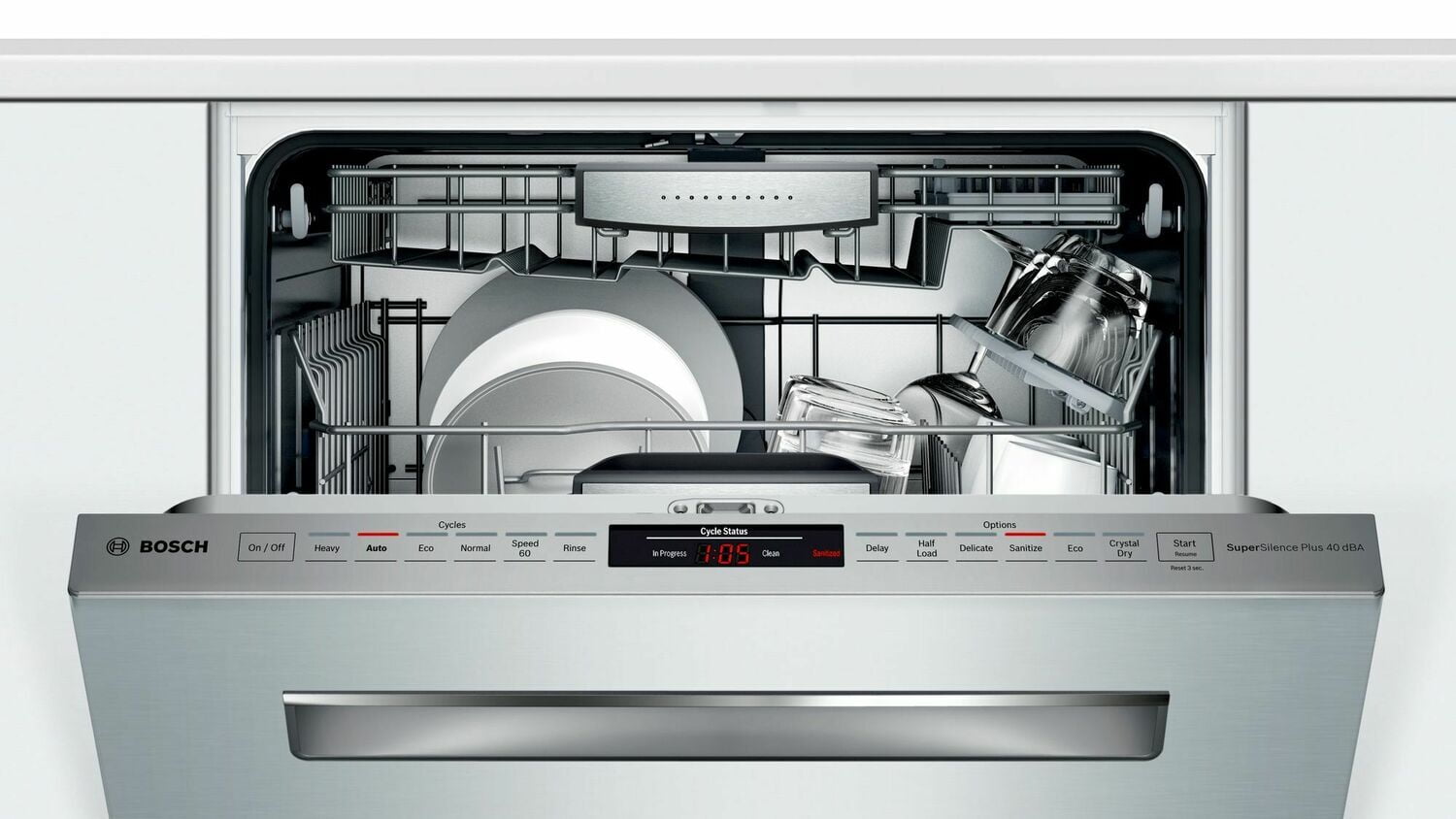 Bosch dishwashers are whisper quiet so you never have to wait until bedtime to run the dishwasher. Some of the 18 ways we approach noise reduction includes: multiple insulation layers, grindless food filtration, our EcoSilence motor system, and a sound absorbing base. *Based on an average of sound ratings for 24" full-size stainless steel tub dishwashers contained in major brands' websites. Major brands defined as TraQline Top 5 Market Share, December 2019.