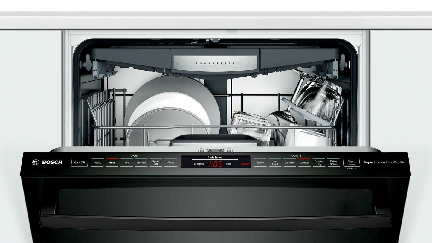 Bosch dishwashers are whisper quiet so you never have to wait until bedtime to run the dishwasher. Some of the 18 ways we approach noise reduction includes: multiple insulation layers, grindless food filtration, our EcoSilence motor system, and a sound absorbing base. *Based on an average of sound ratings for 24" full-size stainless steel tub dishwashers contained in major brands' websites. Major brands defined as TraQline Top 5 Market Share, December 2019.