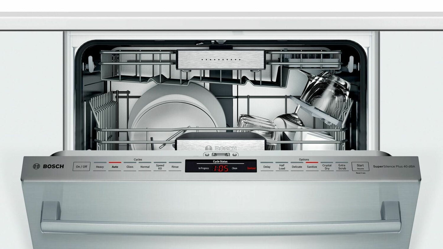 Bosch dishwashers are whisper quiet so you never have to wait until bedtime to run the dishwasher. Some of the 18 ways we approach noise reduction includes: multiple insulation layers, grindless food filtration, our EcoSilence motor system, and a sound absorbing base. *Based on an average of sound ratings for 24" full-size stainless steel tub dishwashers contained in major brands' websites. Major brands defined as TraQline Top 5 Market Share, December 2019.